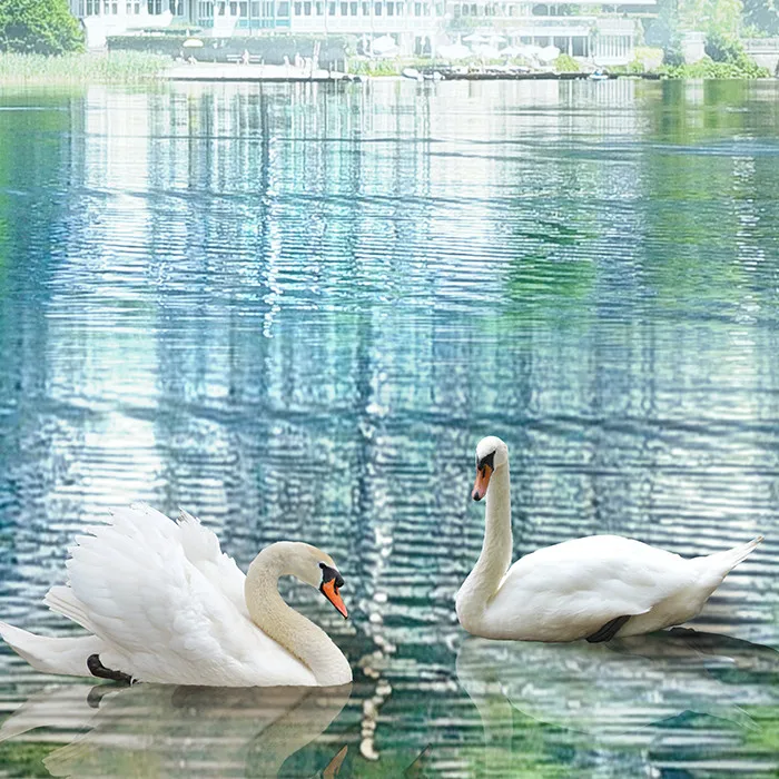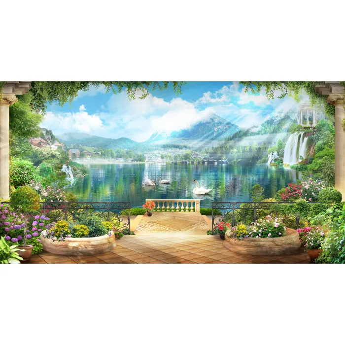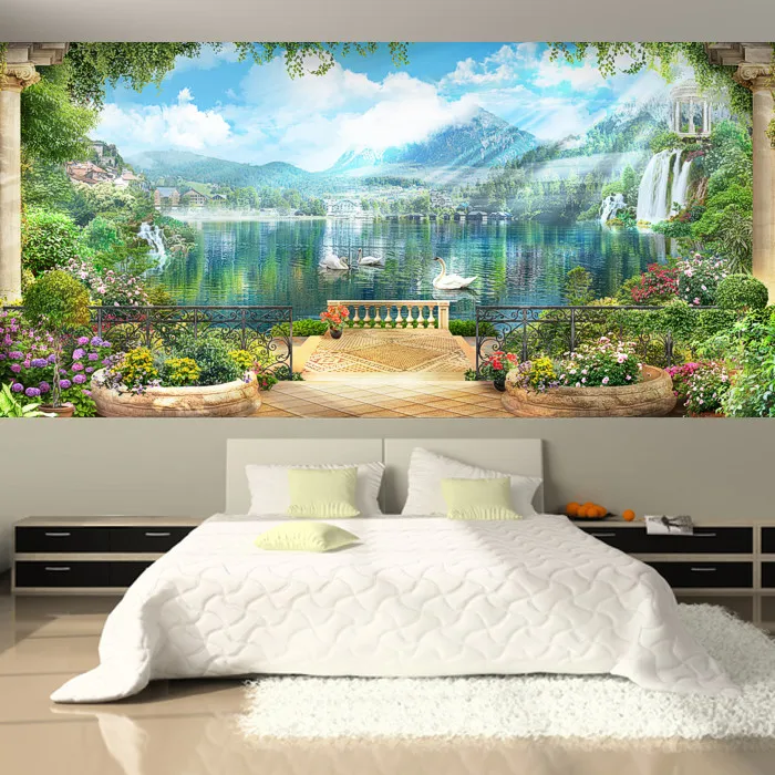 Custom Size 3D Photo Mural Wall Sticker Swans Lake View Removable Wall Papers Self-adhesive Vinyl Art Home Decor