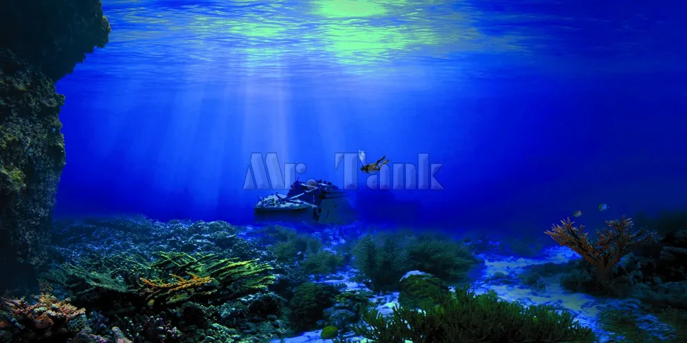 Custom Size Aquarium Background Poster With Self-Adhesive Seabed Wreck High Glossy PVC Fish Tank Decorative Backdrop Sticker