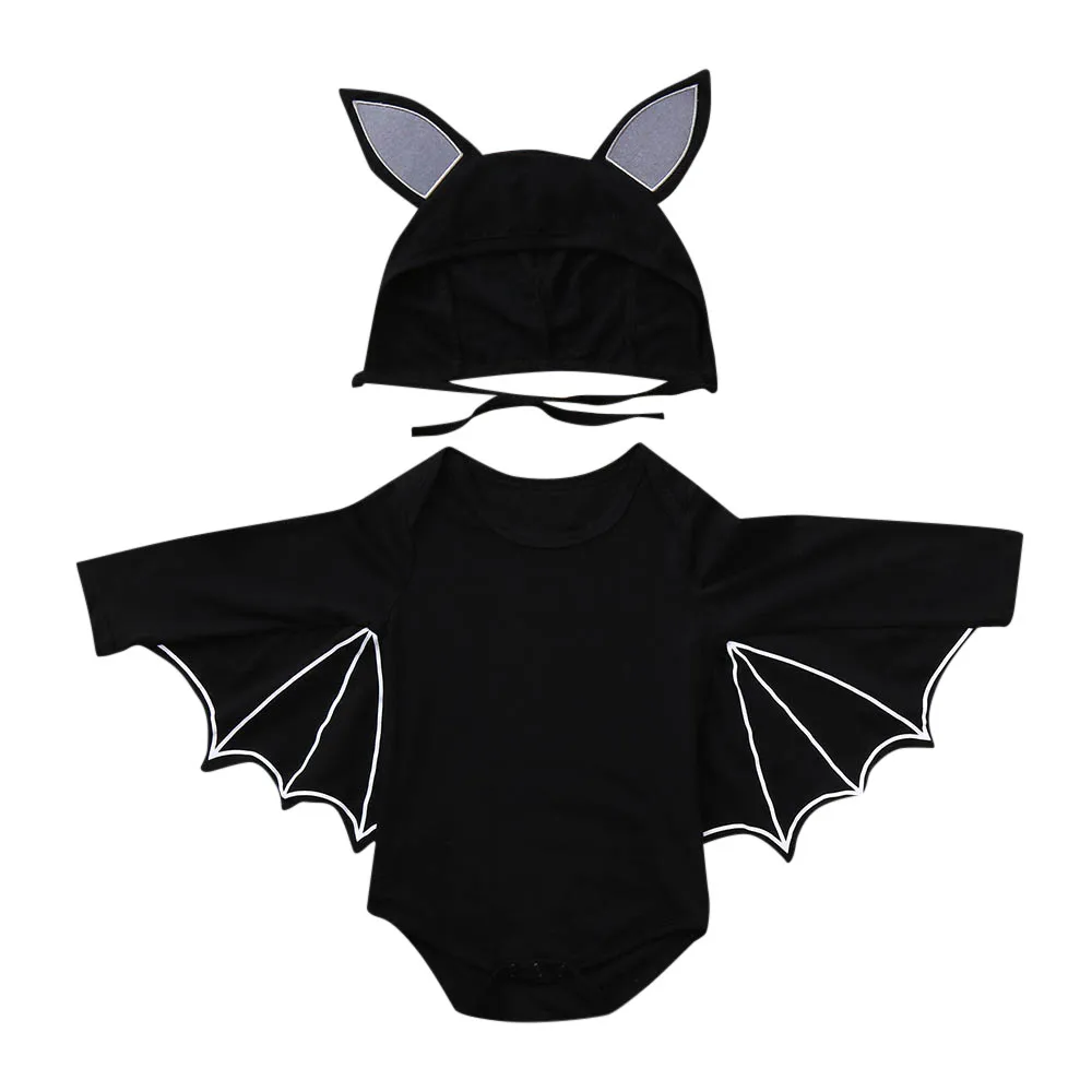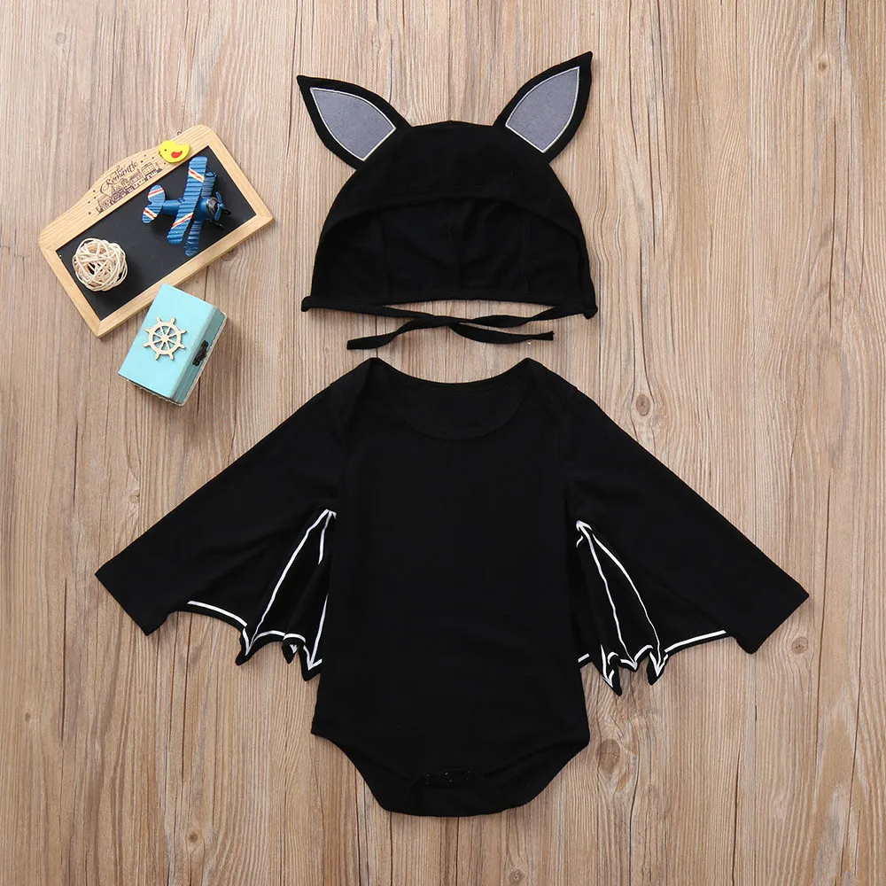 Cute Baby Kids Halloween Clothing Baby Boys Girls Long Sleeve Halloween Cosplay Costume Romper +Cartoon Ear Hat Outfits Set