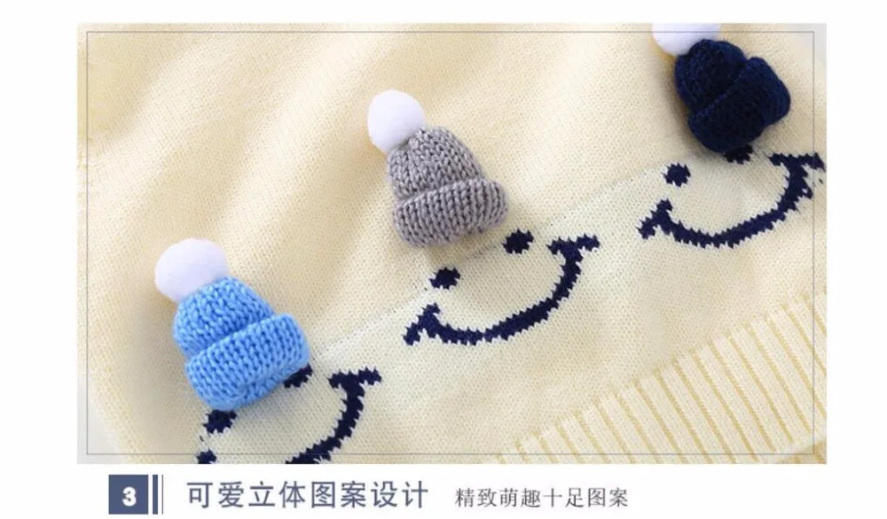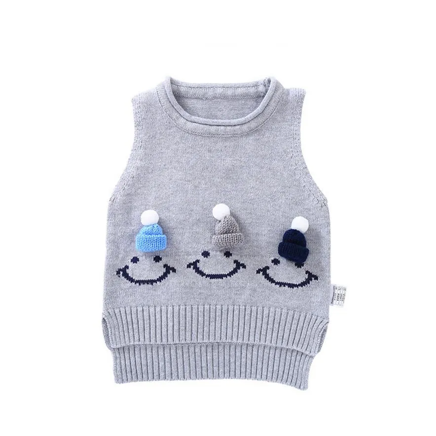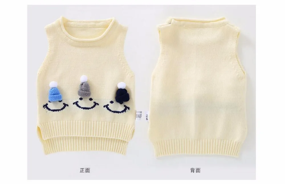 Cute Baby Sweater Waistcoat Baby Girl Vest Smile Hat Baby Boy Outfit O-Neck Knitted Clothes 4Colors for 1-3T