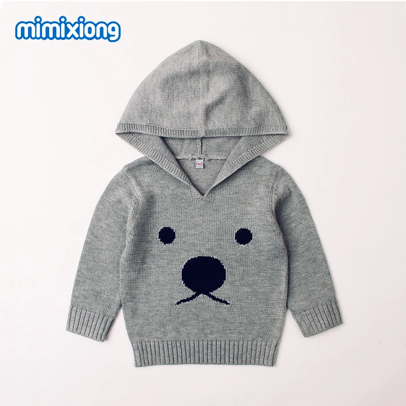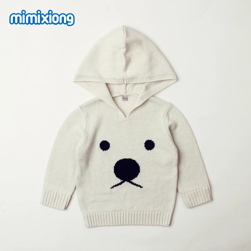Cute Bear Sweater For Boy Hooded Long Sleeve Newborn Baby Pullovers White Knitted Infant Girls Knitwear Top Spring Children Wear