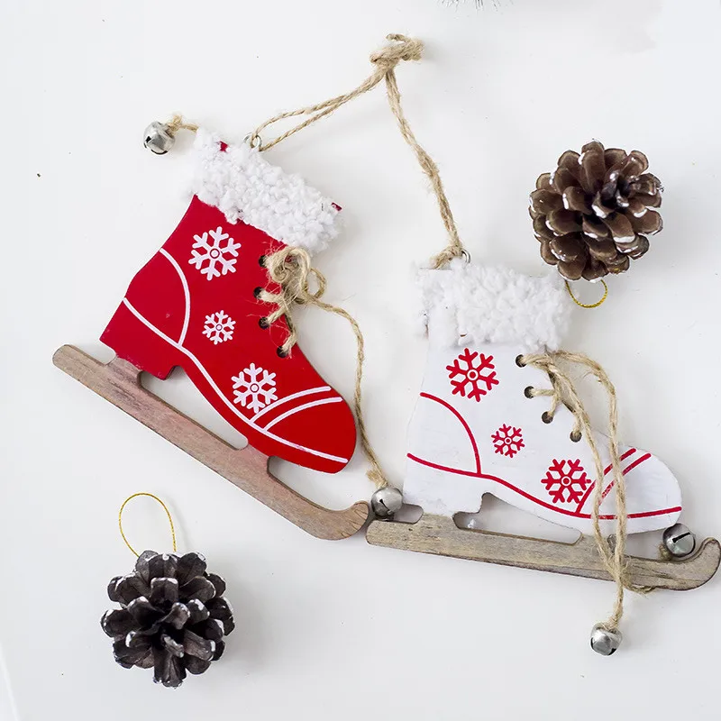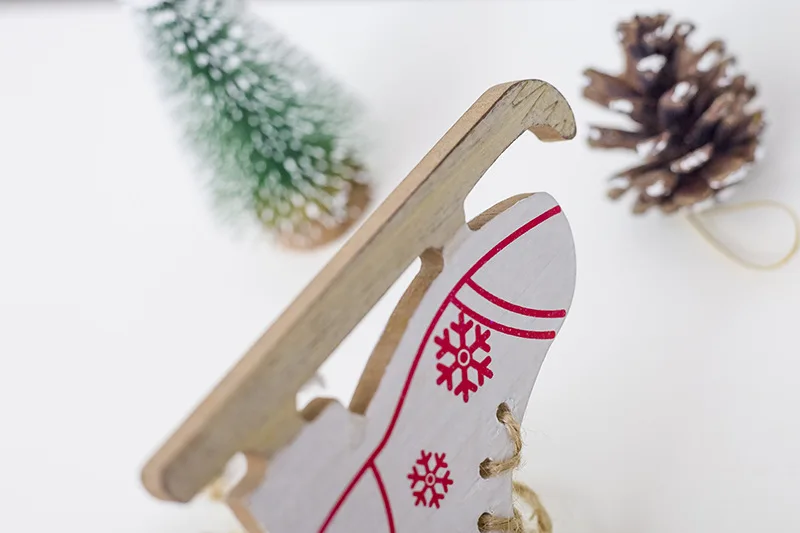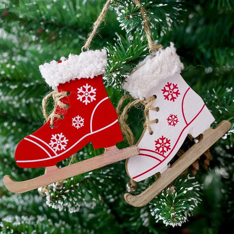 Cute Christmas Decorative Ornament Snowflake Pattern Skating Shoes Wooden Craft Christmas Tree Decoration for Home Xmas New Year