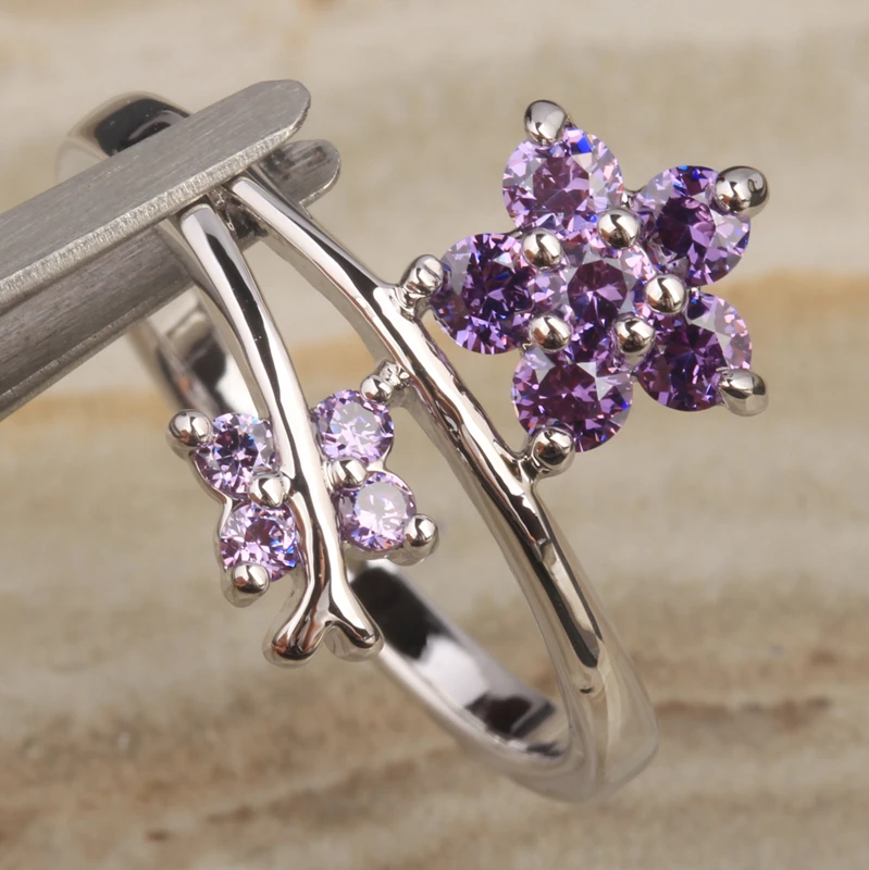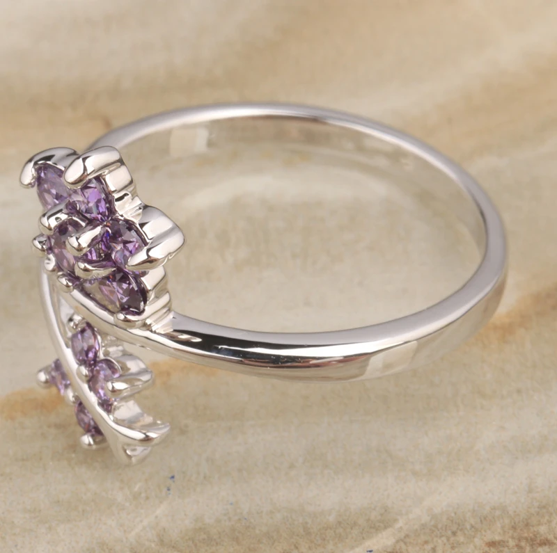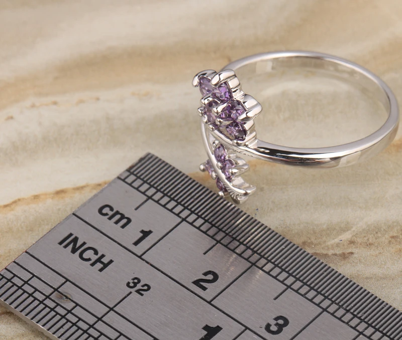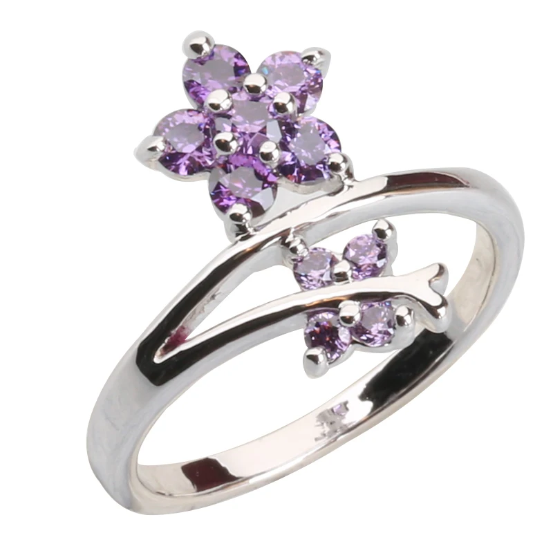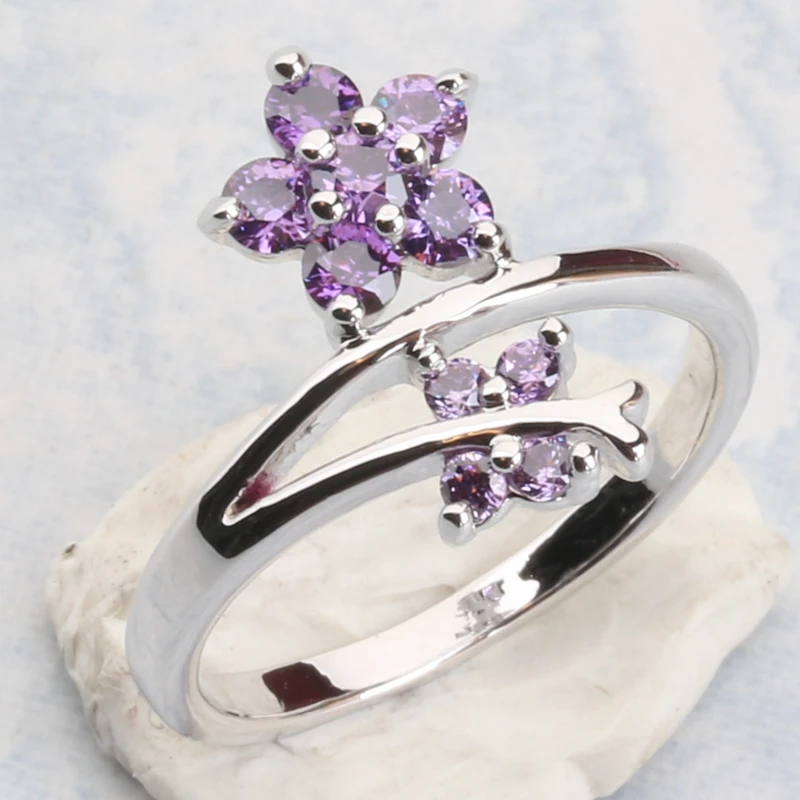 Cute Purple Zircon 925 Sterling Silver Ring Size 6 / 7 / 8 / 9 S1977