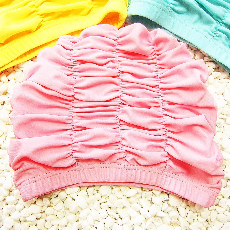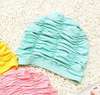 Cute Solid Girls Swimming Cap Waterproof Swimming Cap Long Hair Baby Girls Swim Pool Caps Ear Protection Pink Hat Kids Swimwear