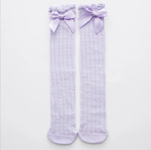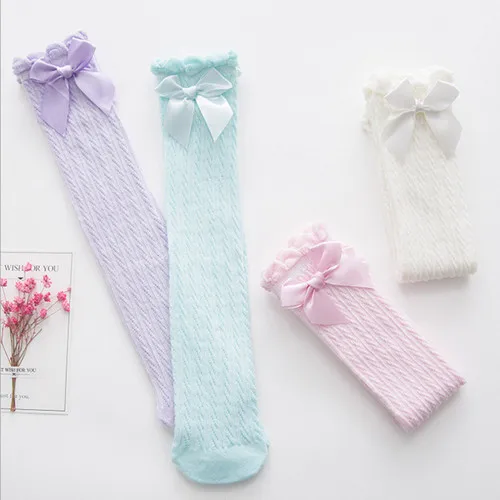 Cute Toddler Kids Baby Girl Knee High Long Lace Bow Cotton Warm Stockings Blue Pink Purple White