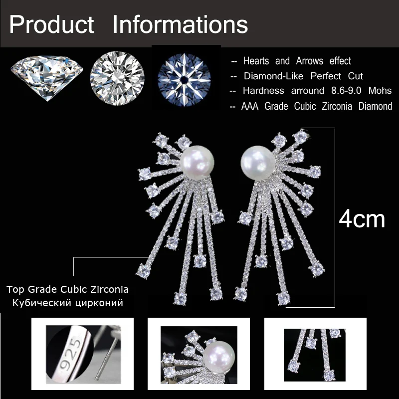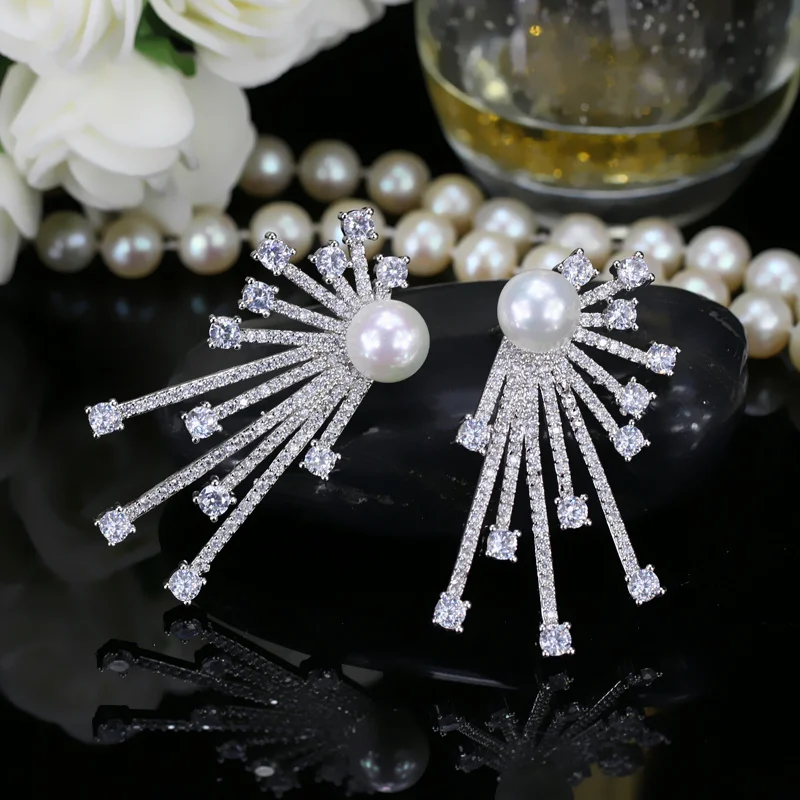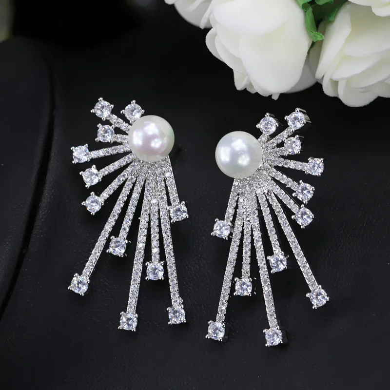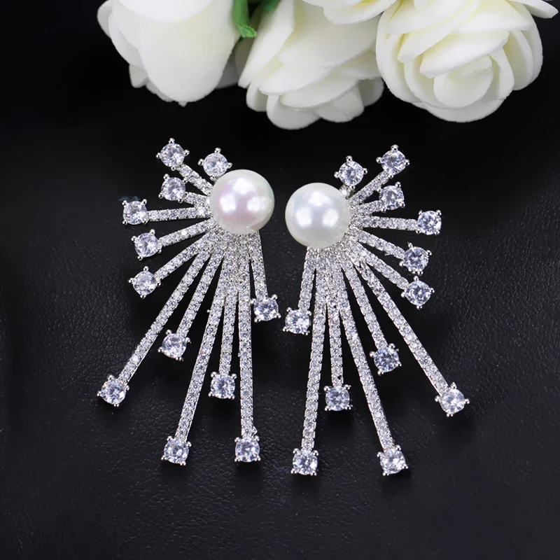CWWZircons 2018 New Arrival Blooming Cubic Zirconia Paved Korean Fashion 925 Sterling Silver Pin Pearl Earring For Women CZ048