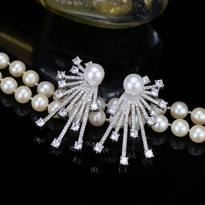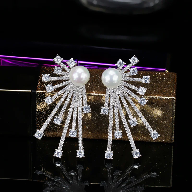 2018 New Arrival Blooming Cubic Zirconia Paved Korean Fashion 925 Sterling Silver Pin Pearl Earring For Women CZ048