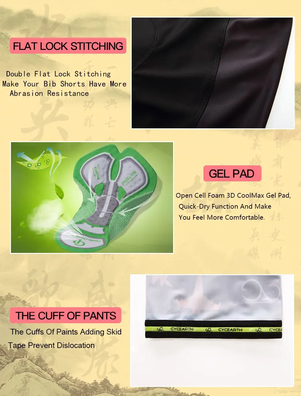 CYCEARTH 2017 Men Summer bib shorts Breathable cycling Bike Bicycle Race MTB Pants Sport Wear Gel Pad CE0053