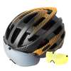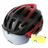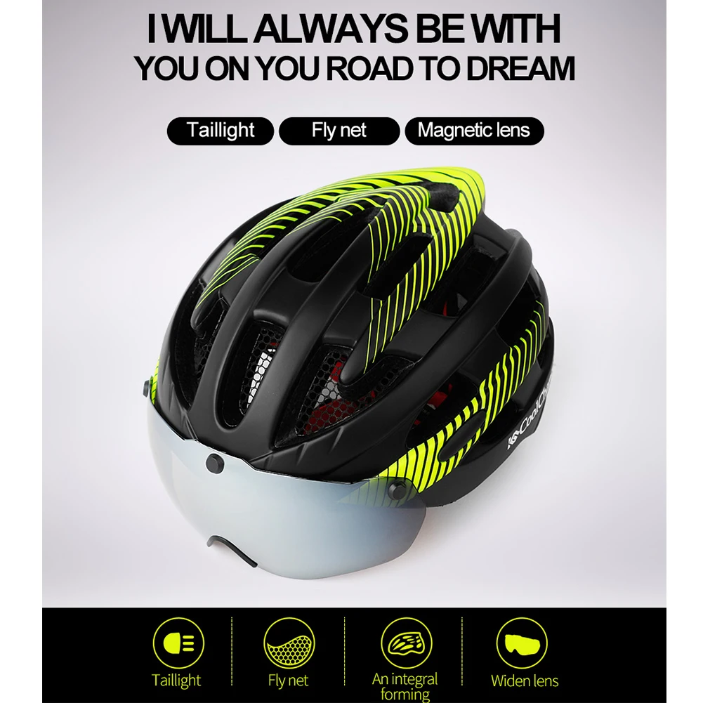 All the excellent features of the goggles helmet is on this helmet to make riding get rid of worry. It is equipped with taillights, insect-proof nets, widened goggles. High-definition eyeglass, magnetic suction widened design, it is more convenient for wearing myopia glasses, easy and fast. Silver-plated eyeglass are included with the helmet and are suitable for daytime and snow riding. Yellow light enhanced eyeglass are available as needed for night and haze weather. The widened design makes it can be worn directly by myope. The goggle can be covered over the myopic glasses to protect the eyes. The taillight makes night riding safer, and the combination of helmet taillights and head circumference adjustment buckles makes it safer to ride at night. The insect-proof net prevents the mites from entering the hair and prevents foreign objects from interfering with riding. Head circumference adjustment system features a soft rubber regulator, can be freely retractable, to meet the most head circumferences, 360° rotation with one hand operation, convenient and quick.