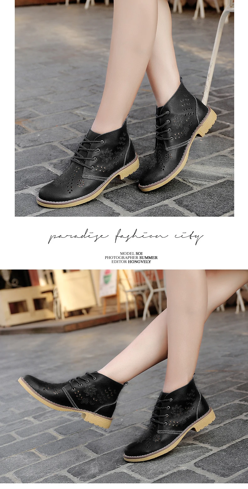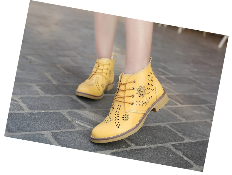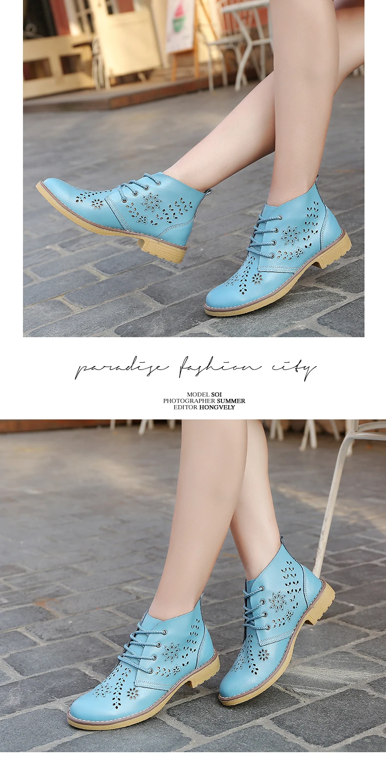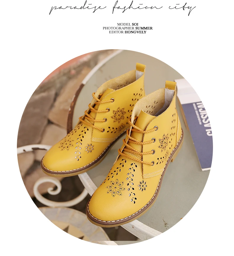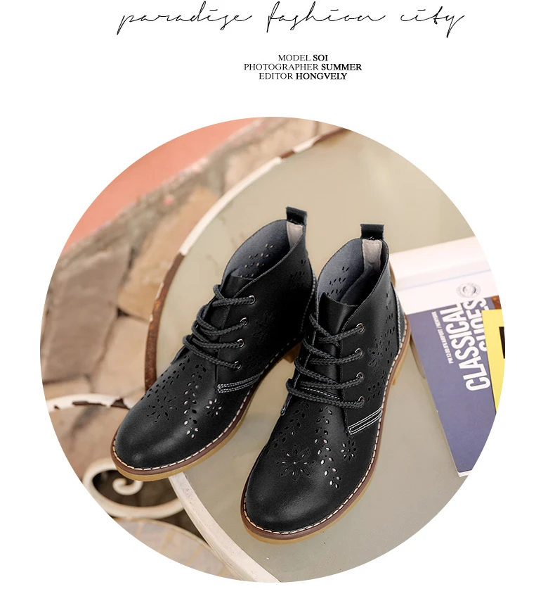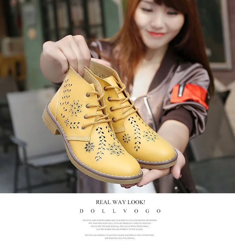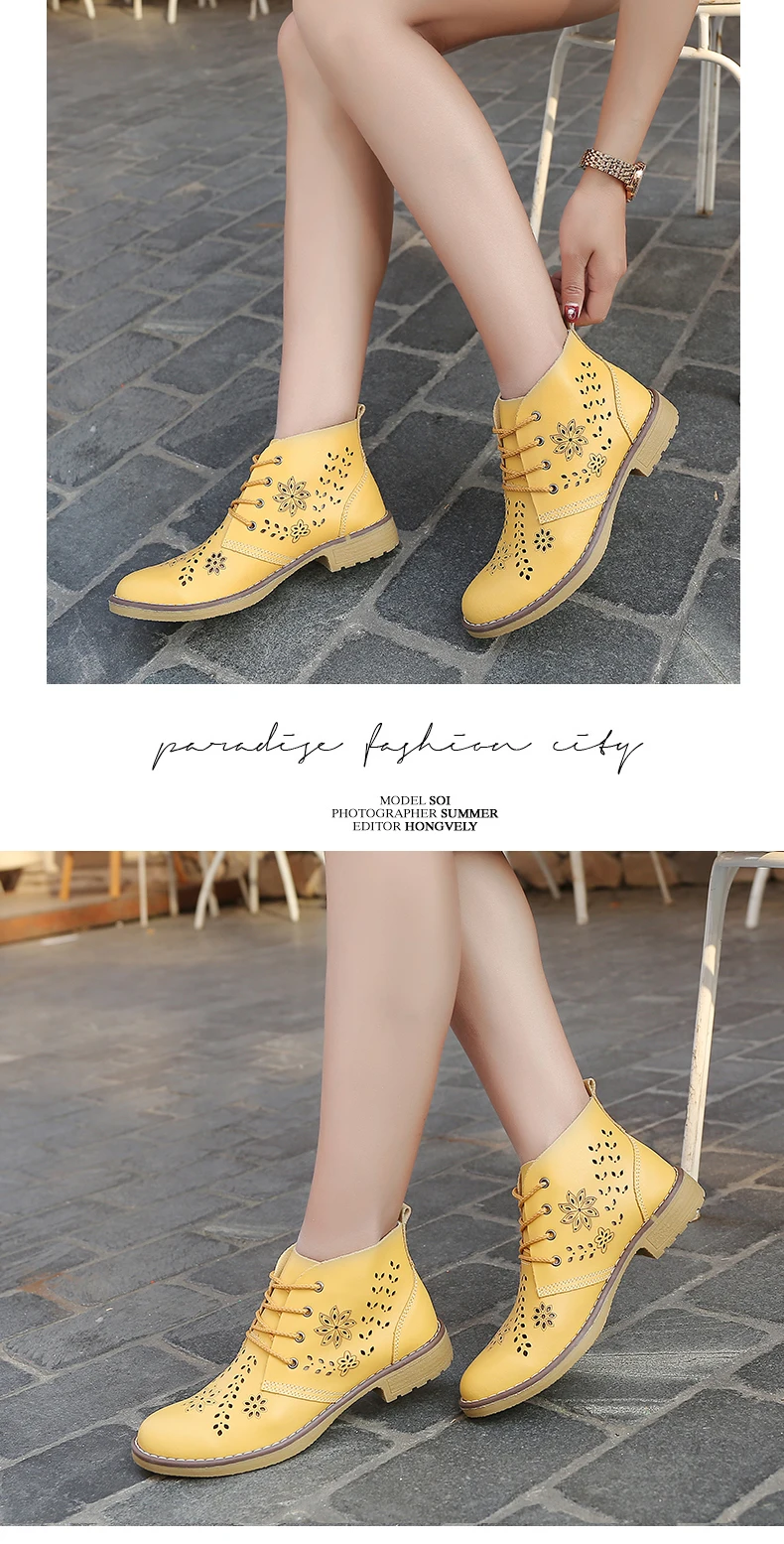 CYOSO Cow Split Leather Short Boots Classical Hollow Women Shoes Lace Up Ankle Martin Boots Summer shoes