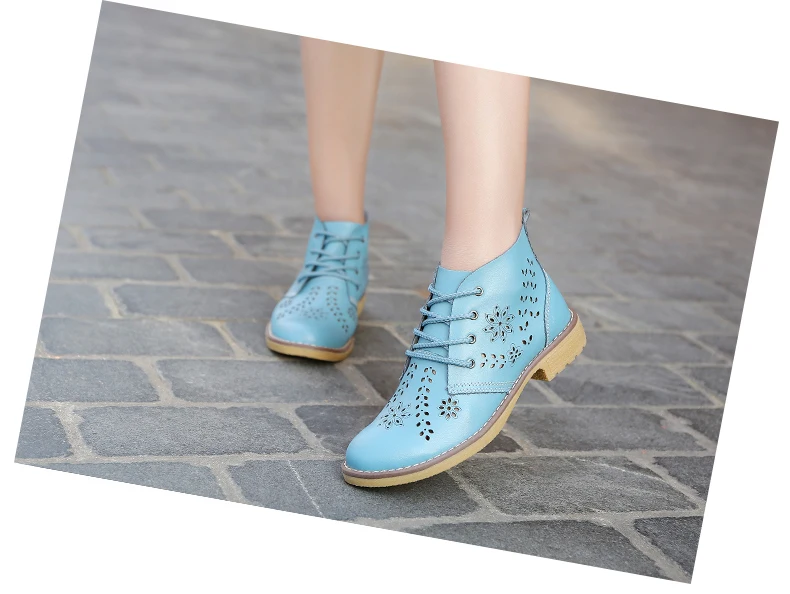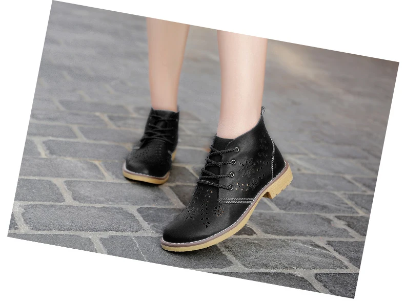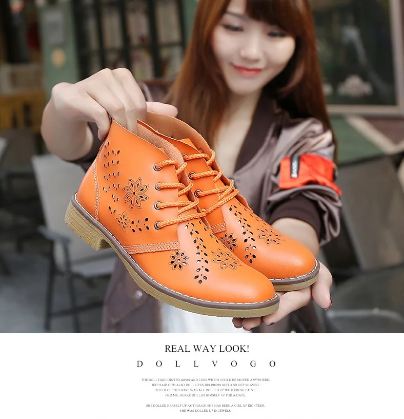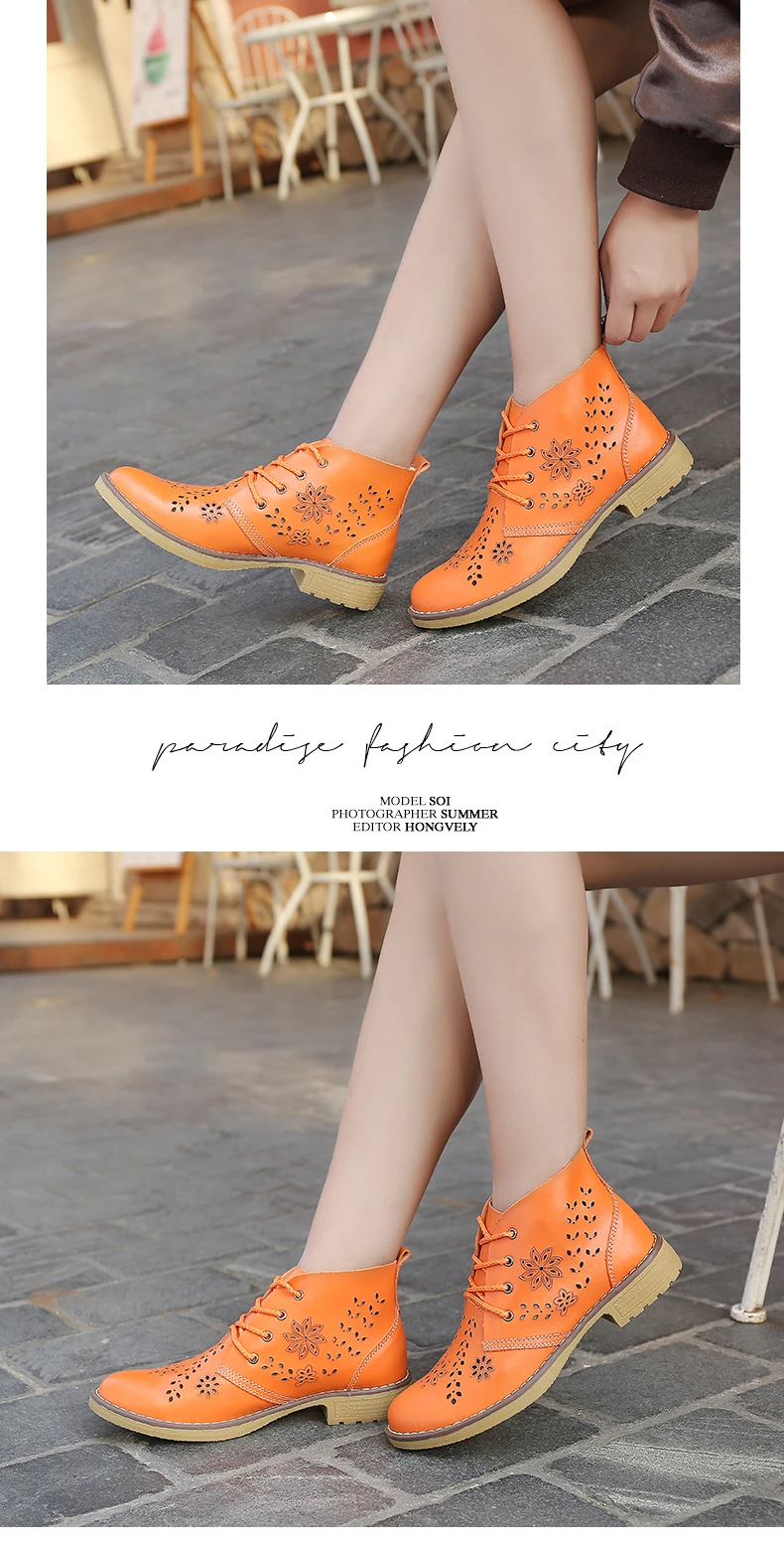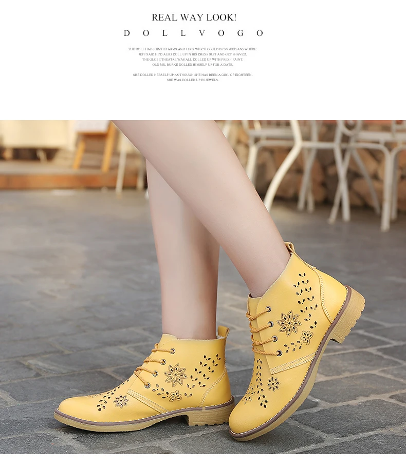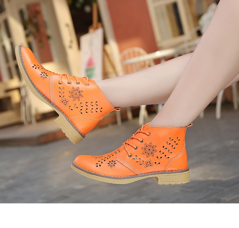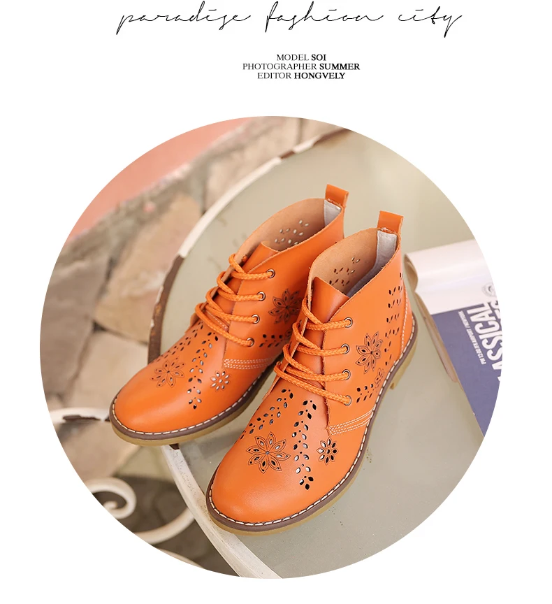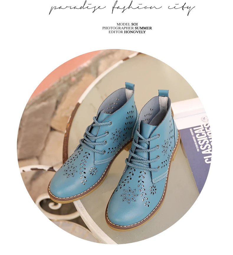 CYOSO Cow Split Leather Short Boots Classical Hollow Women Shoes Lace Up Ankle Martin Boots Summer shoes