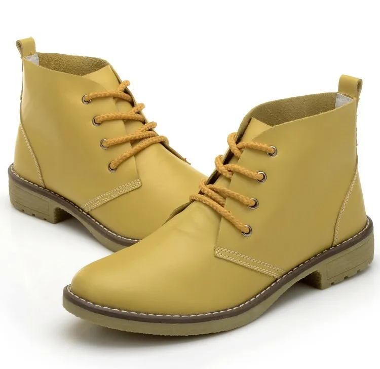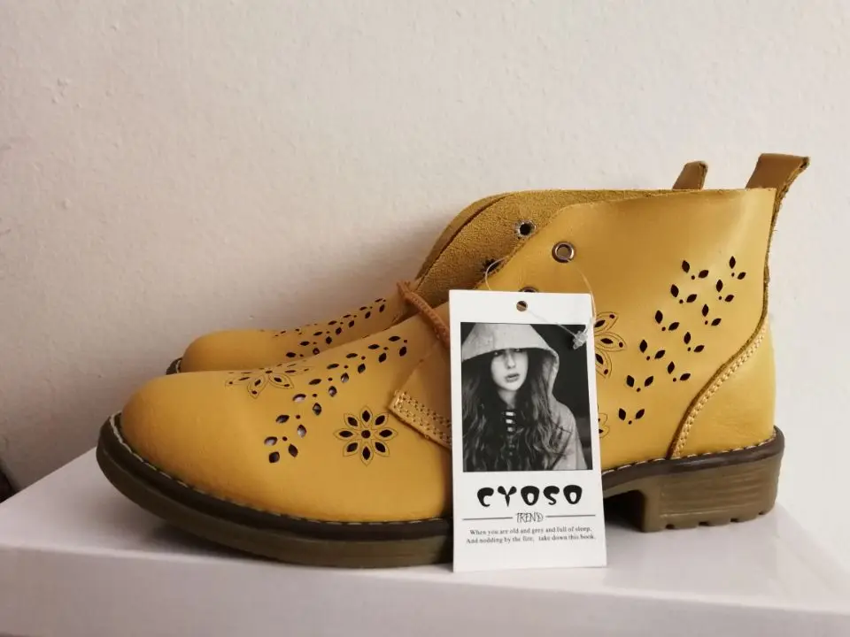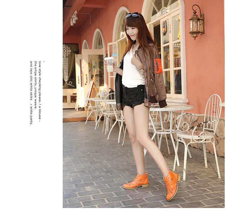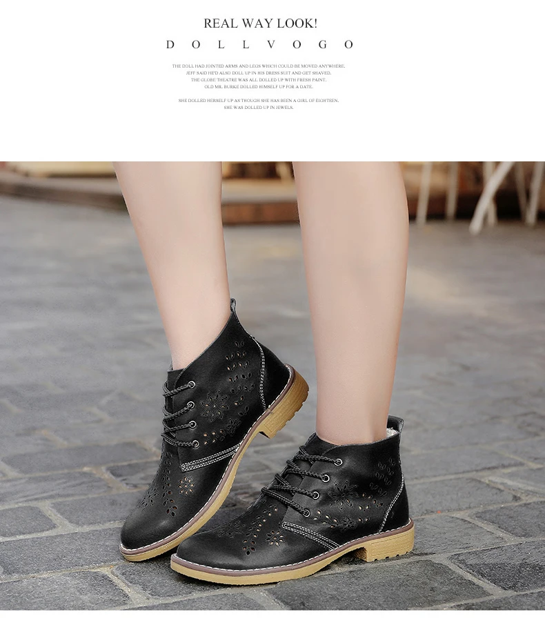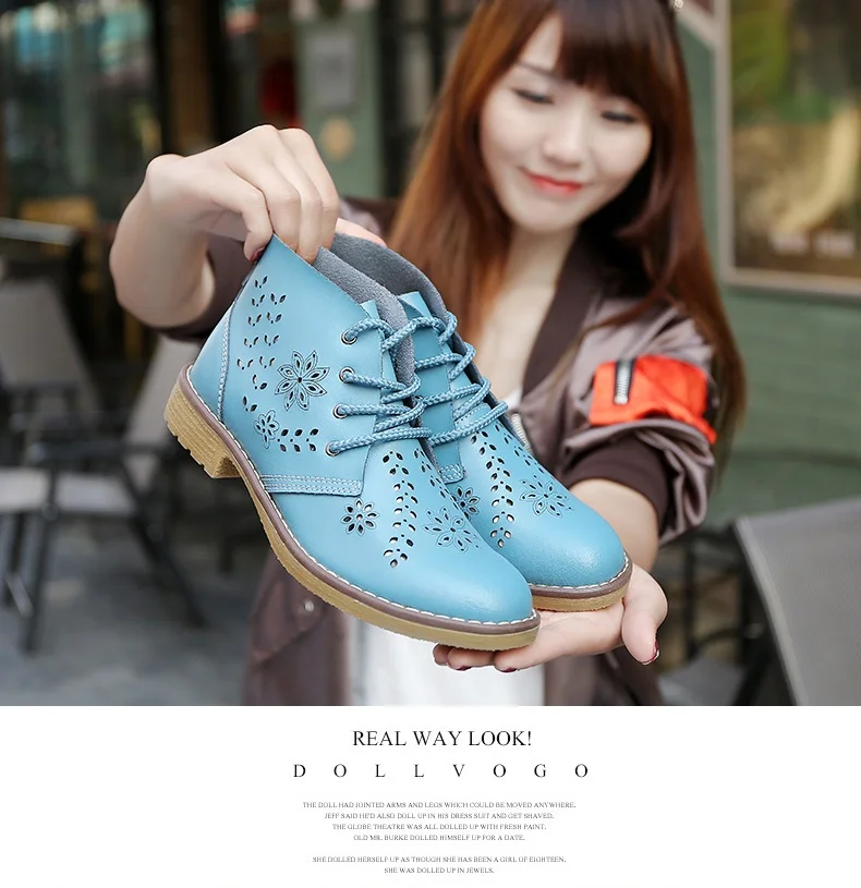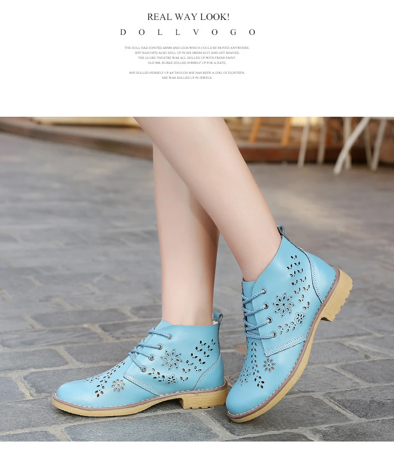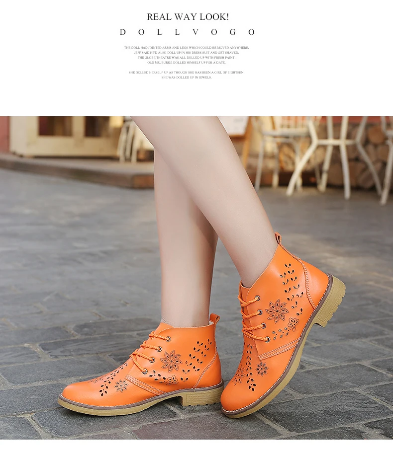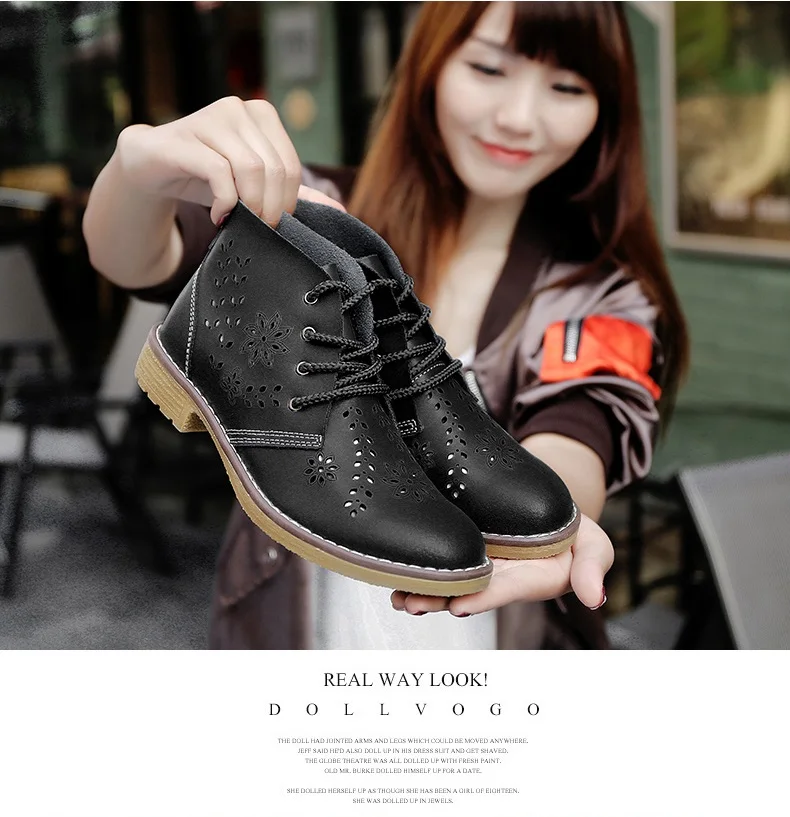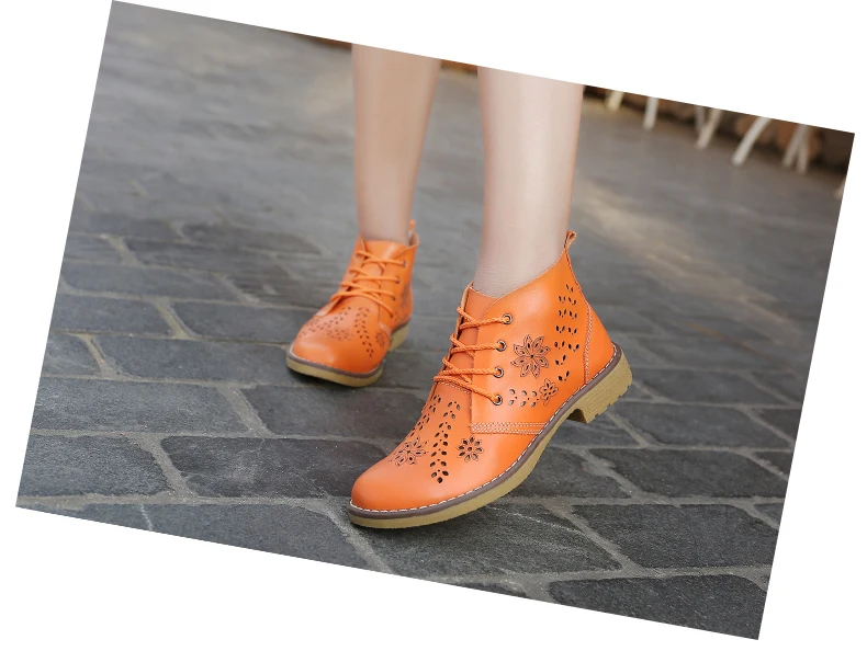 CYOSO Cow Split Leather Short Boots Classical Hollow Women Shoes Lace Up Ankle Martin Boots Summer shoes