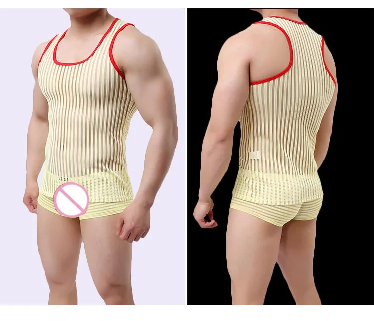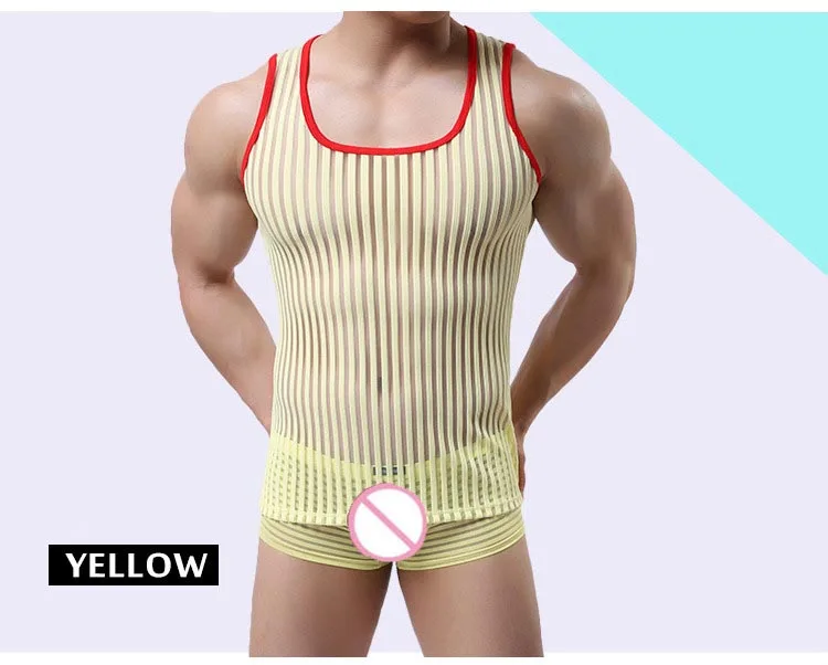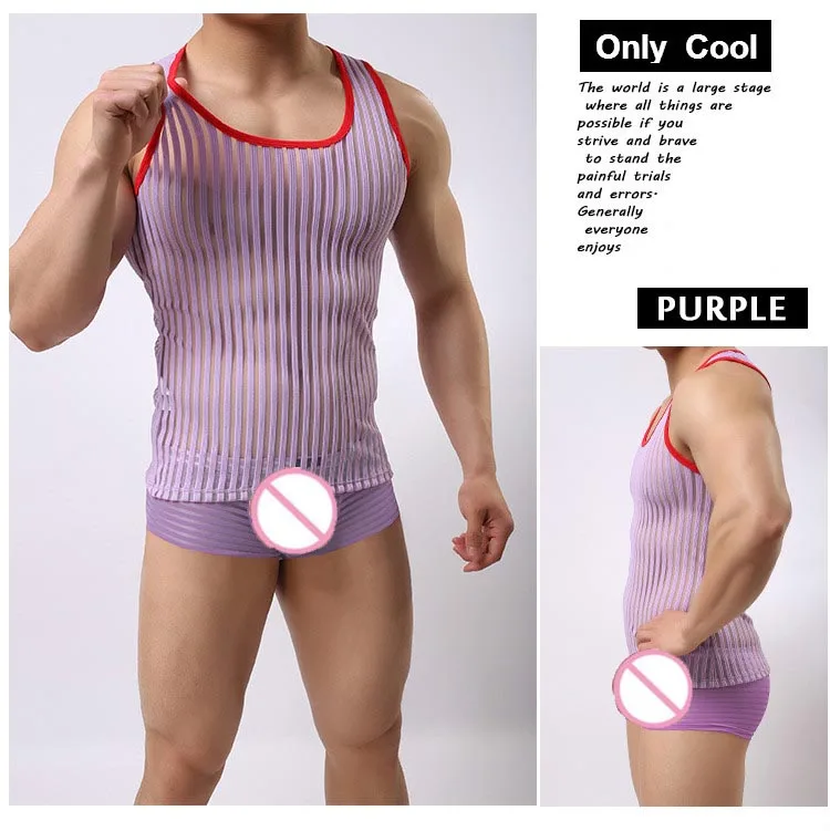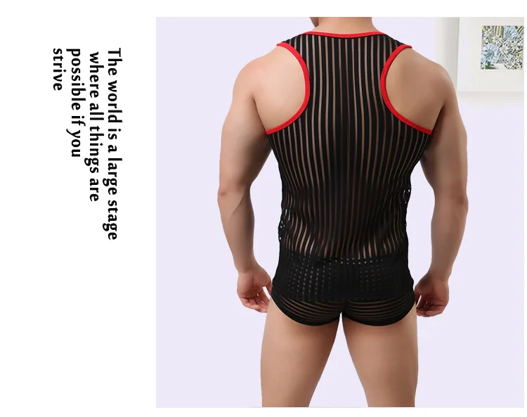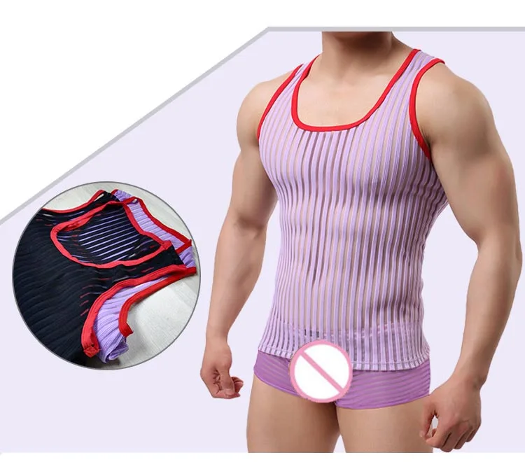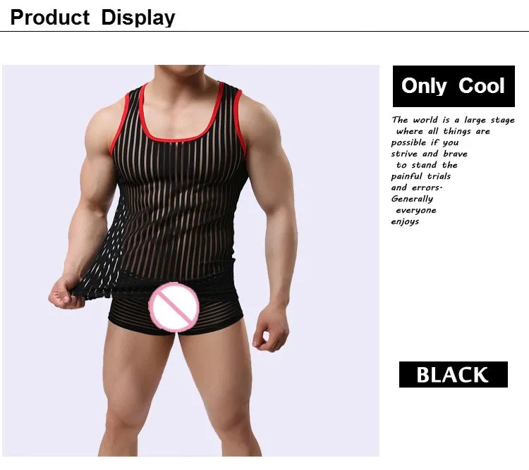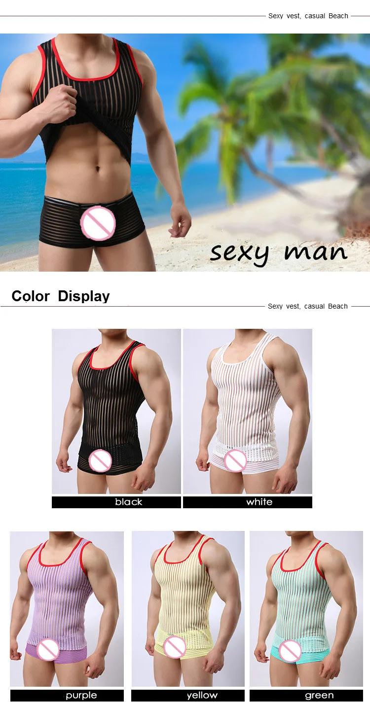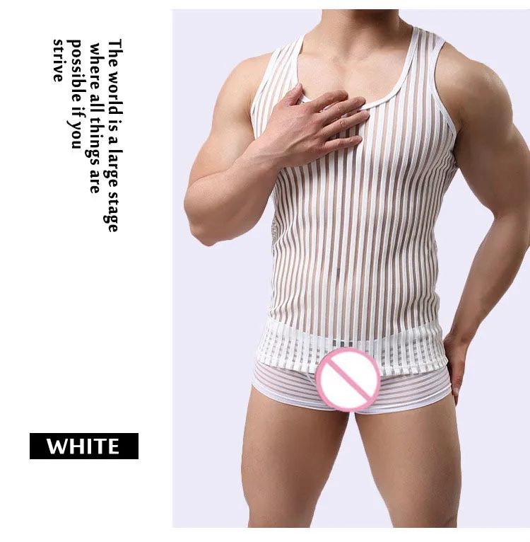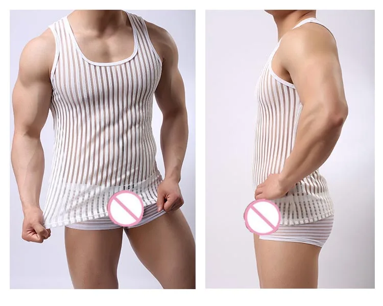 Czzlolo Brand Sexy Mans Semi Transparent Tanks Tops Underwear Undershirt Black White O-Neck Undershirt Tops for Man Size M,L,XL