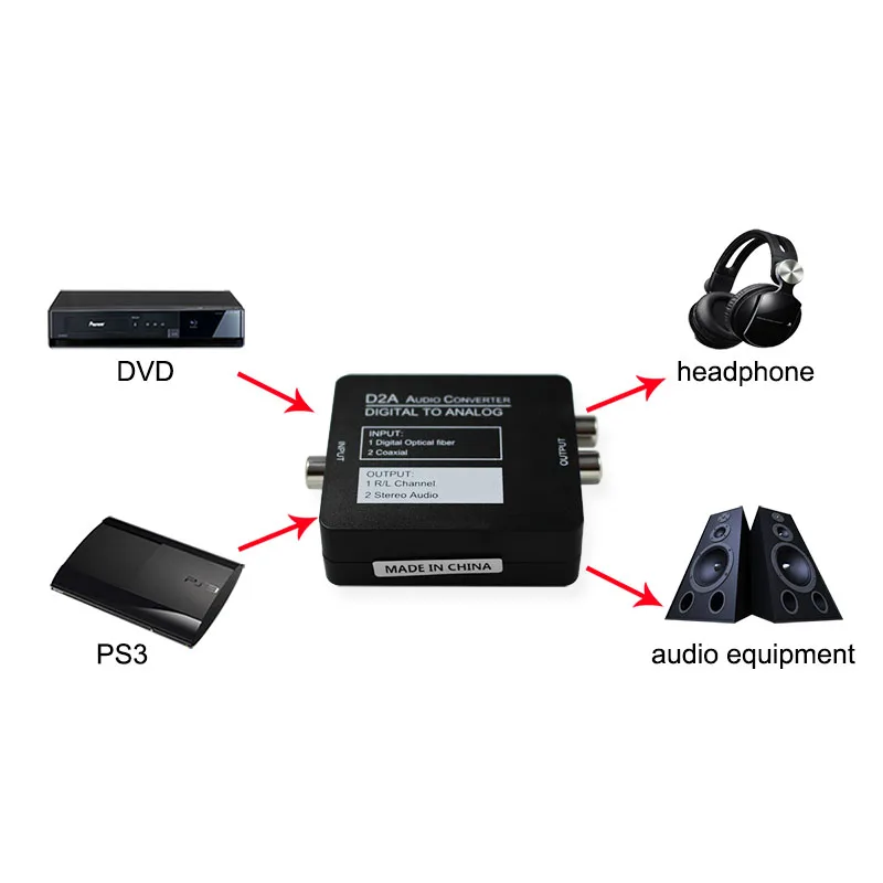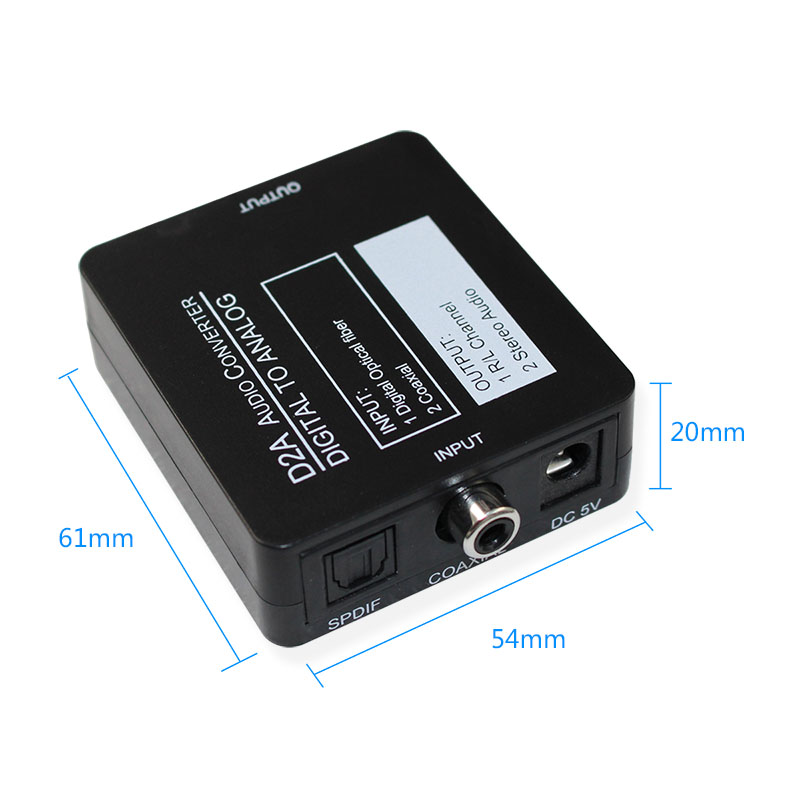 - Digital to Analog Audio Converter, converts coaxial or toslink digital PCM audio signals to analog L/R RCA audio ( not capable of being reversed)