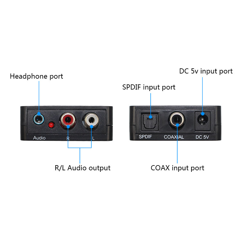 1. Converts coaxial or toslink digital audio signals to analog L/R audio and connects to an external device such as an amplifier via standard RCA jacks