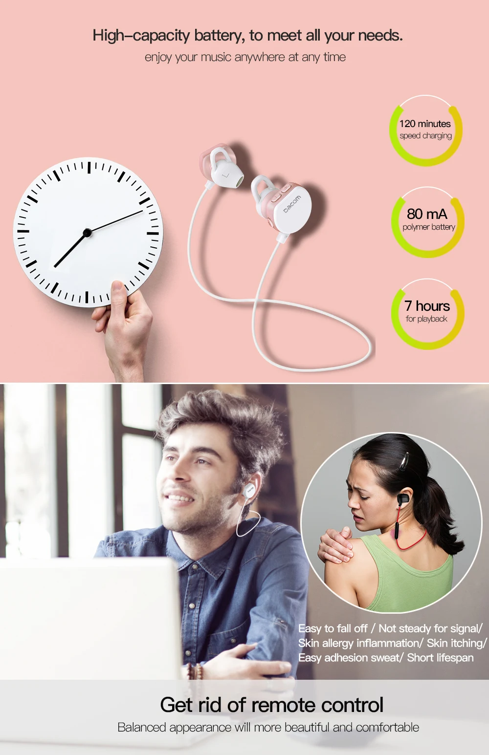 DACOM Bluetooth Headphone Wireless Earphone Stereo Hands-free Earbuds Lady Girls Pink Black Headset for iPhone Samsung LG Sony