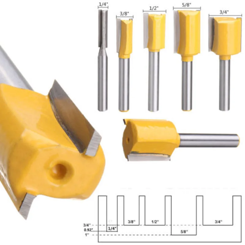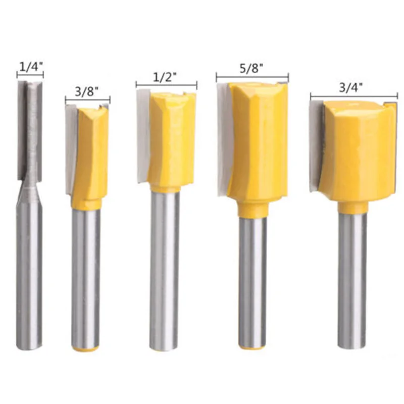 *5PCS 1/4″ inch Shank Straight Router Bit Woodworking Cutting Tools Set Accessories