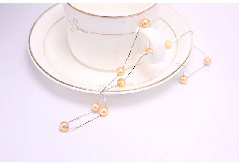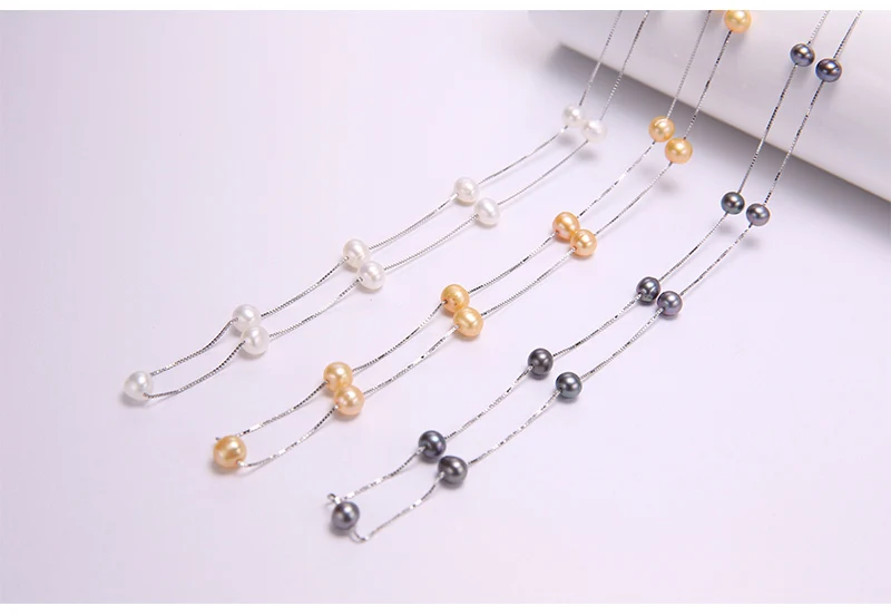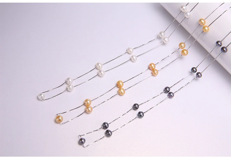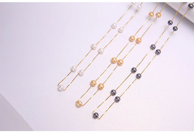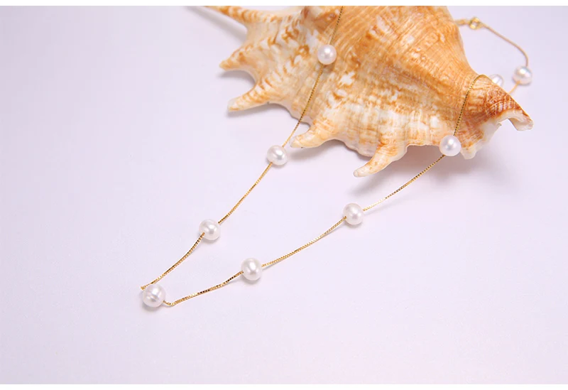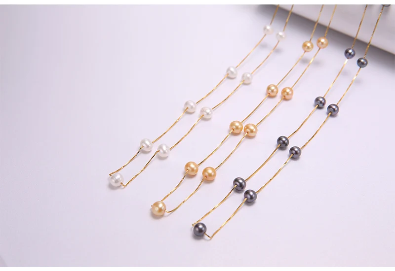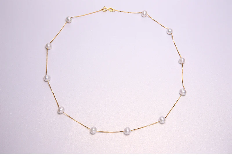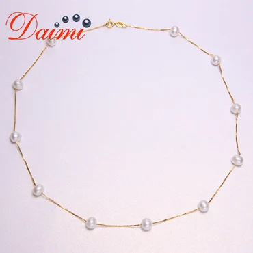 DAIMI Silver Chain Necklace Natural 6-7mm Freshwater Pearl Necklace Tin Cup Choker Necklace Birthday Gift for Wife