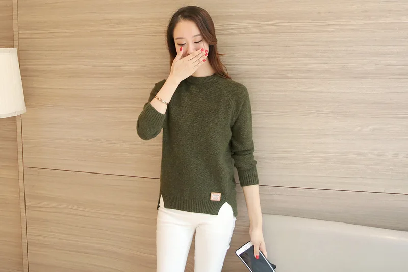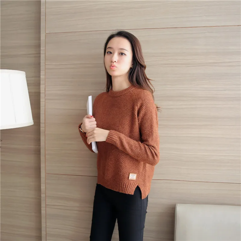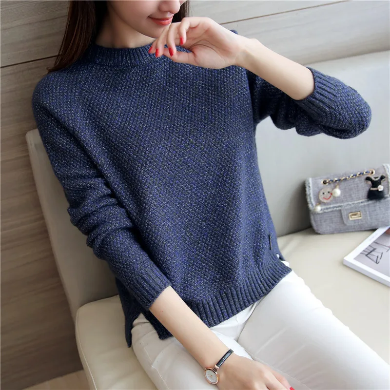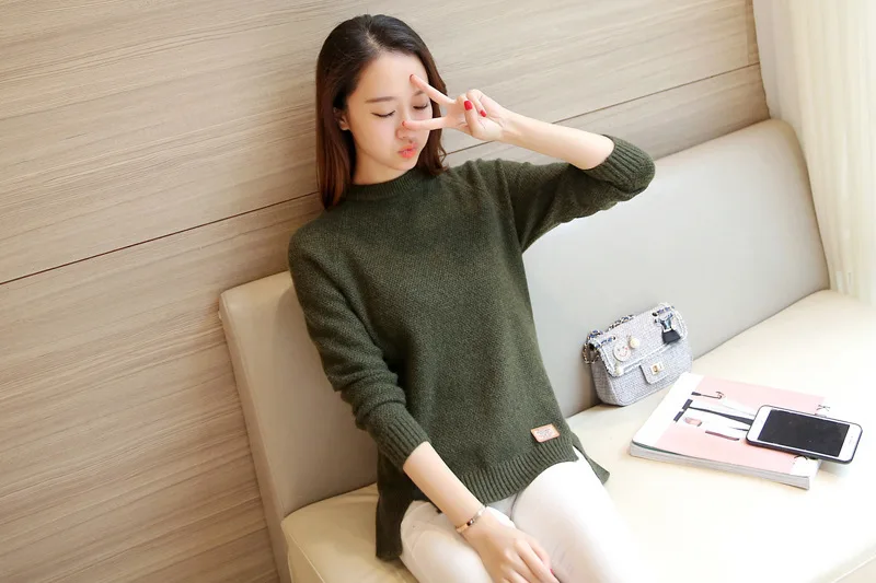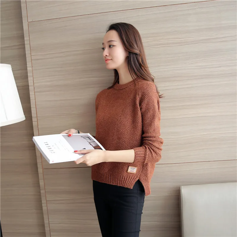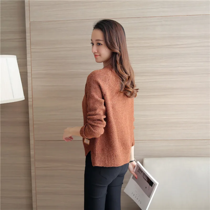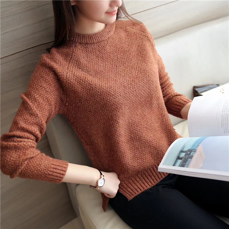 Neck Long Sleeve Solid Warm Pullovers Jumper Women Tops Pull Femme
