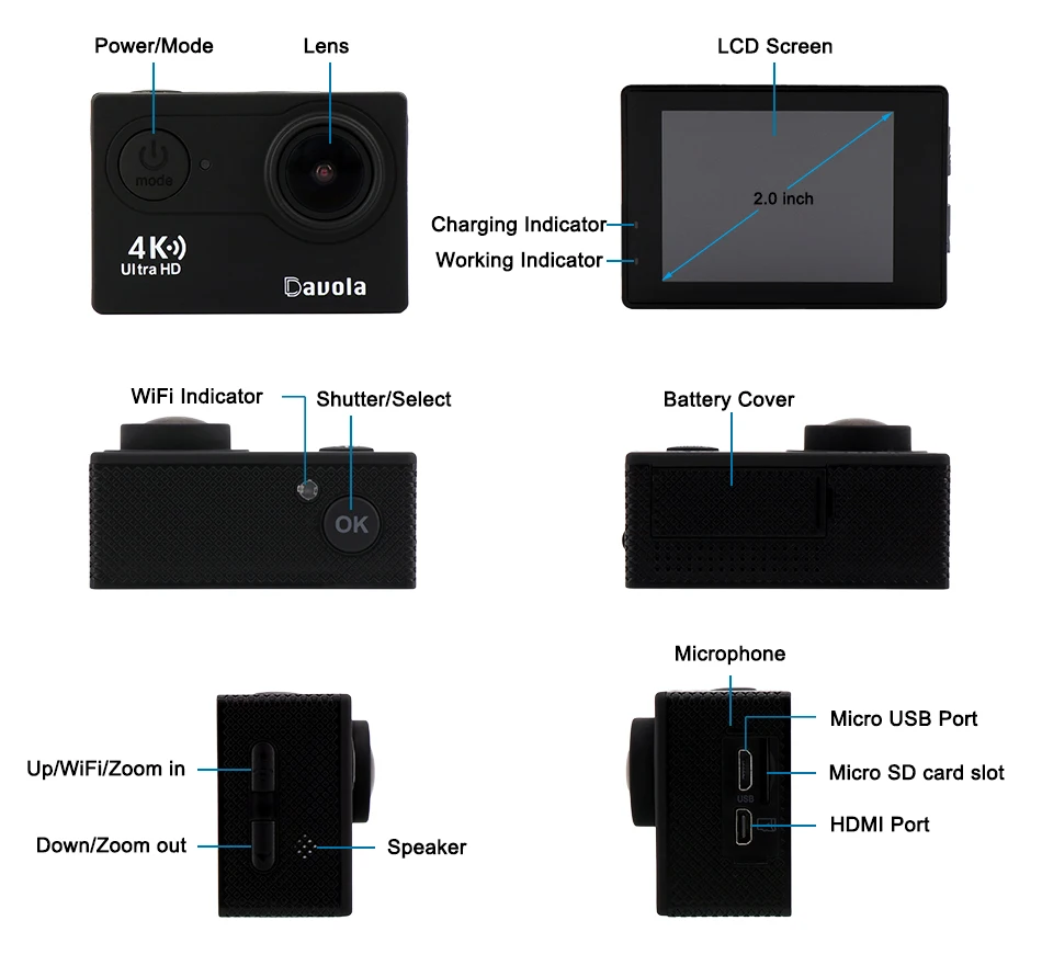 Davola Ultra HD 4K Action Camera underwater waterproof Helmet go outdoor sport DV Mini Camera 1080p wifi pro bicycle sports Cam