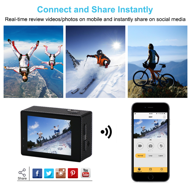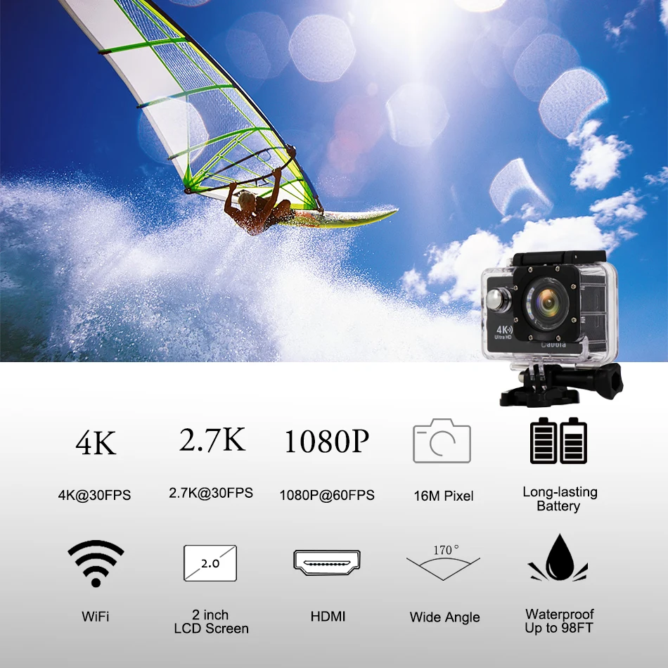 Ultra HD 4K/170° Wide-Angle/WiFi Control/Support Remote/Waterproof Up to 30m(98ft)