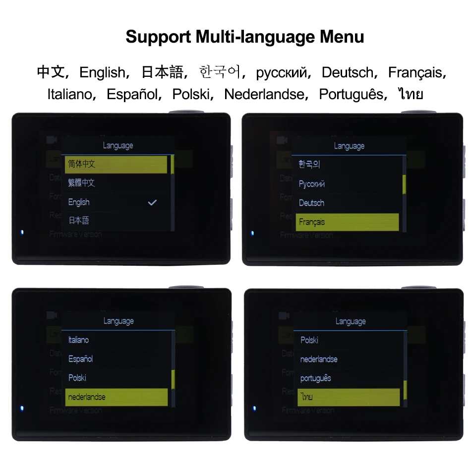 Chinese, English, Japanese, Korean, Russian, German, French, Italian, Spanish, Polish, Dutch, Portuguese, Thai