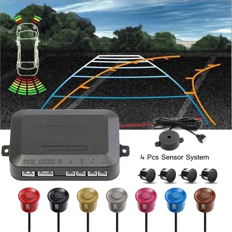 Parking Sensor Colorful Radar Recoil Car Buzzer Alarm System 4 Kit