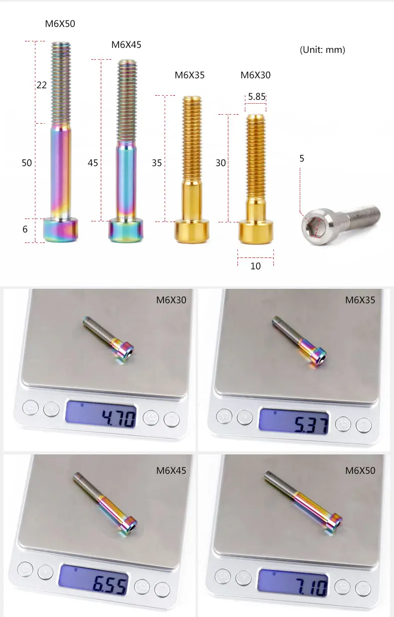 ∙Size: M6*30/35/45/50mm; Head Socket:
