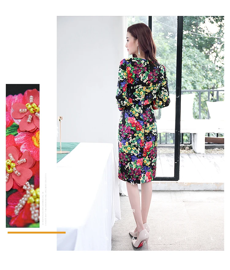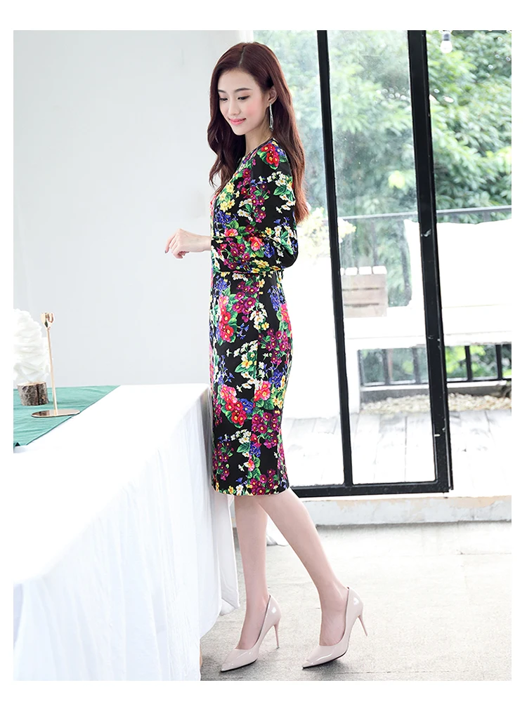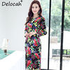 Delocah 2018 New Autumn Women Dress Runway Fashion Designs Long Sleeve Floral Print Midi Pencil Party Elegant Vintage Dress