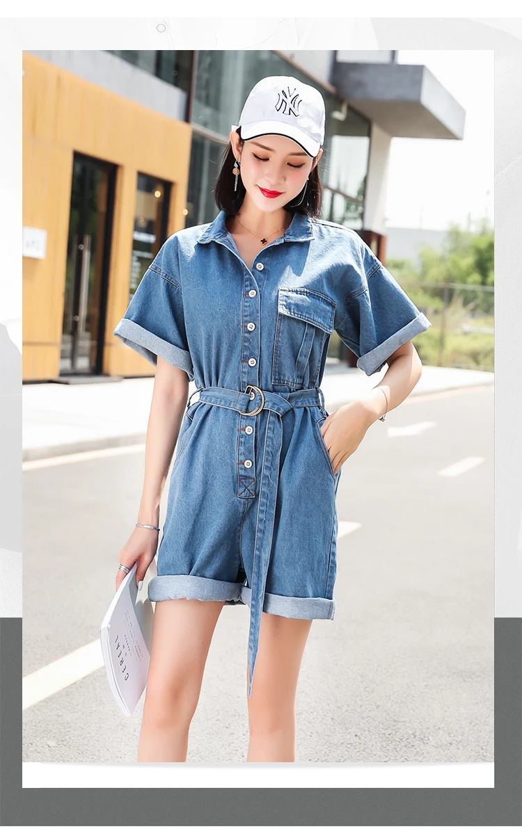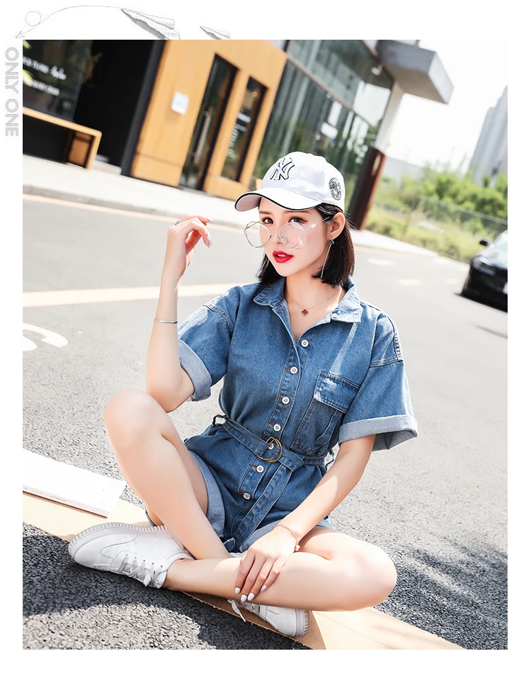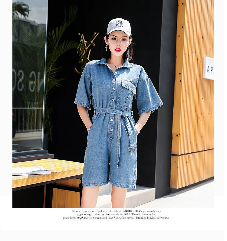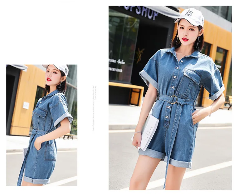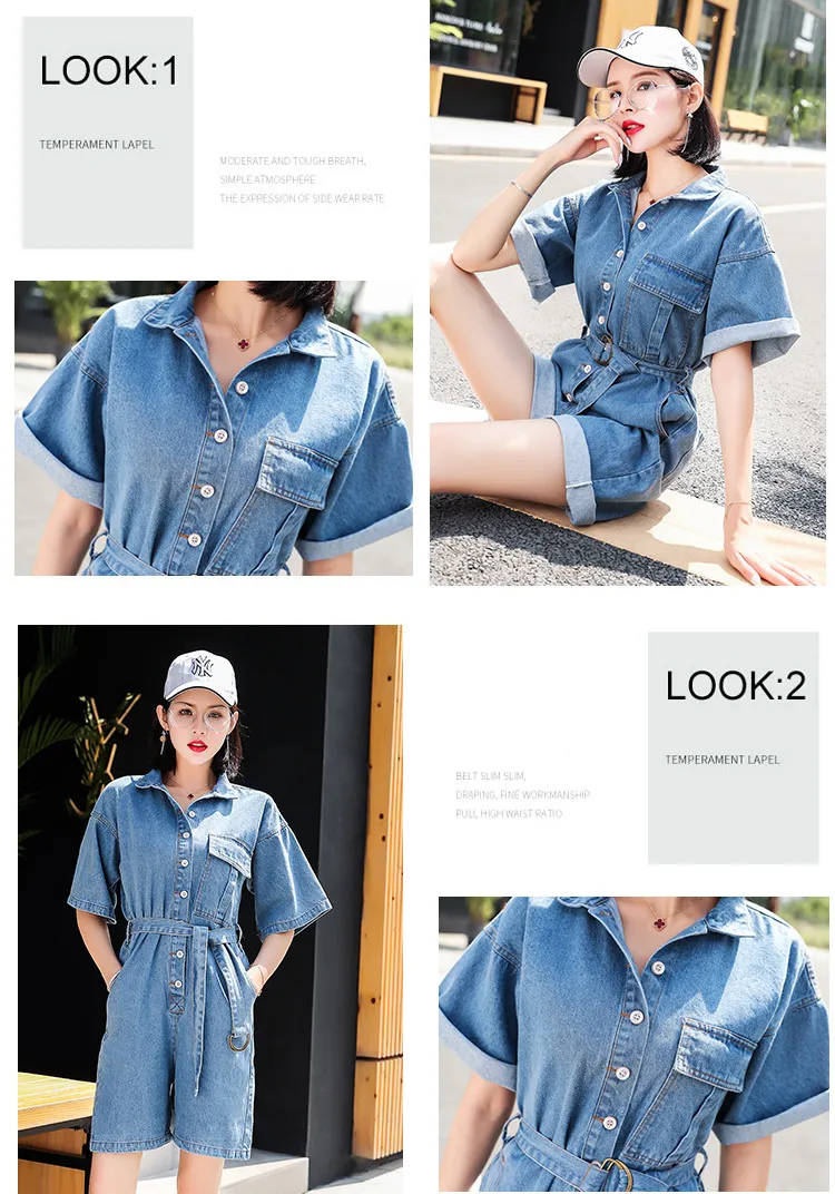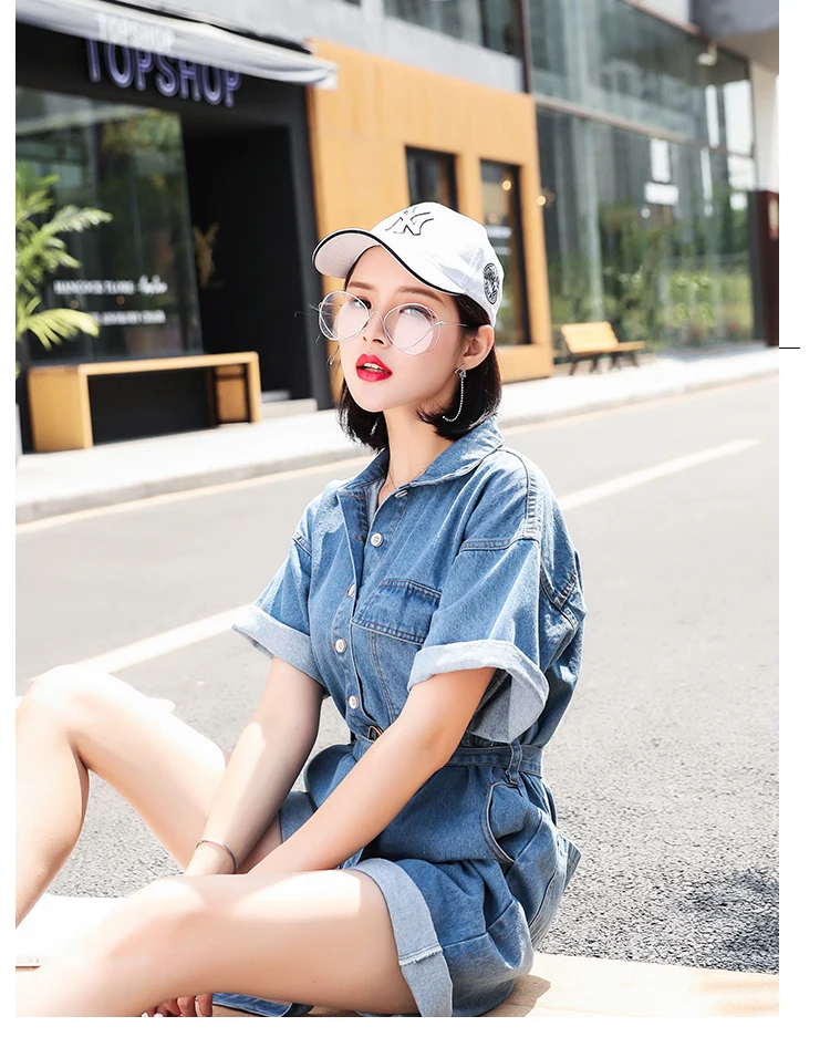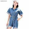 Denim Jumpsuit Women Summer Overalls 2018 Europe America Style Short Sleeve Playsuits Rompers Womens Jumpsuit Shorts Combinaison