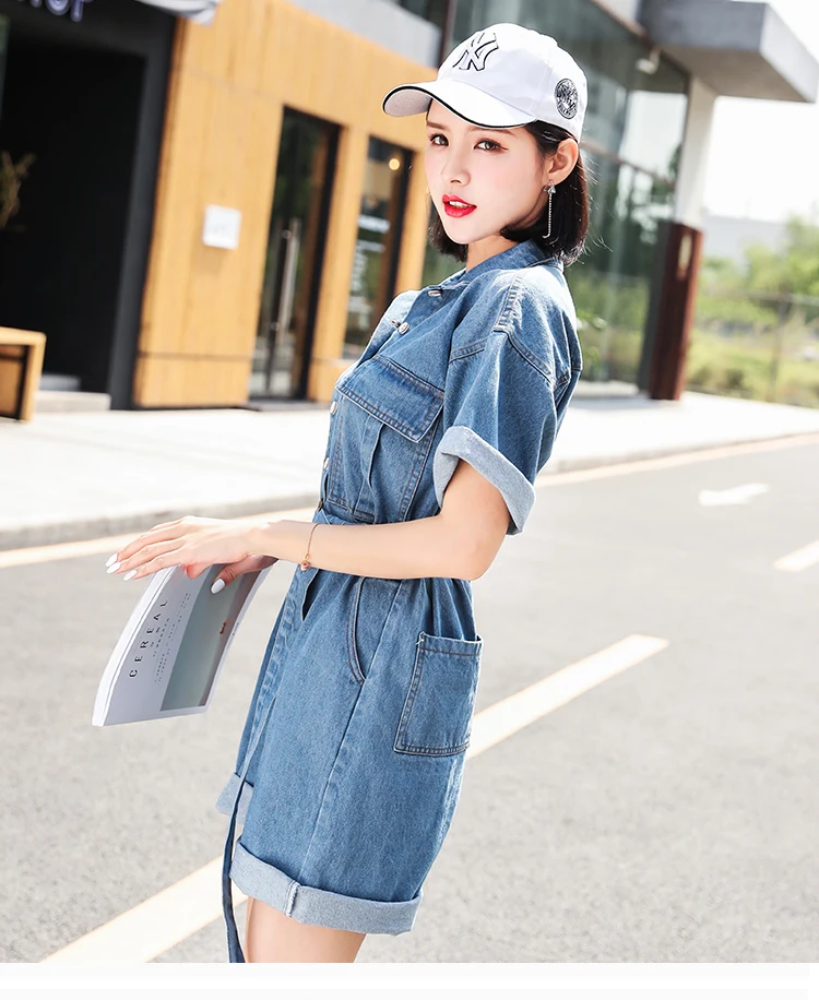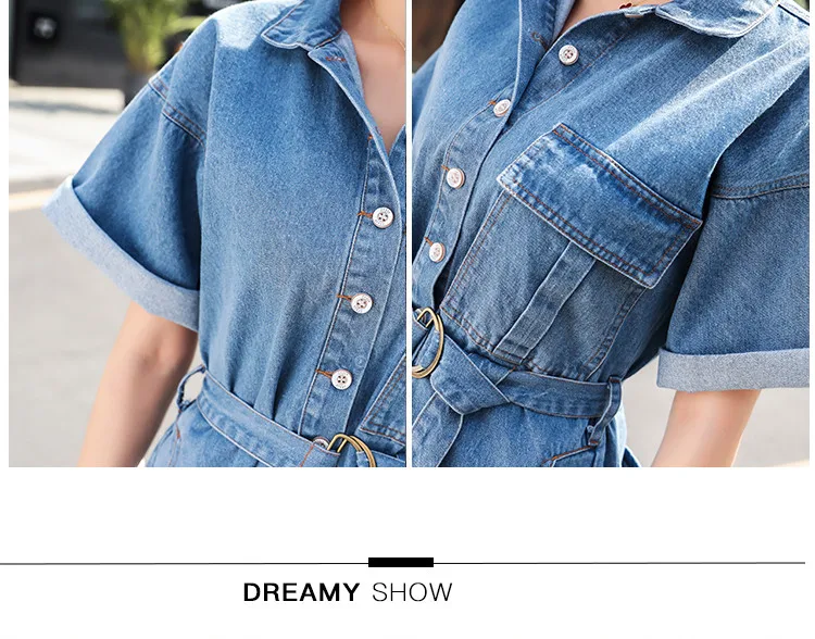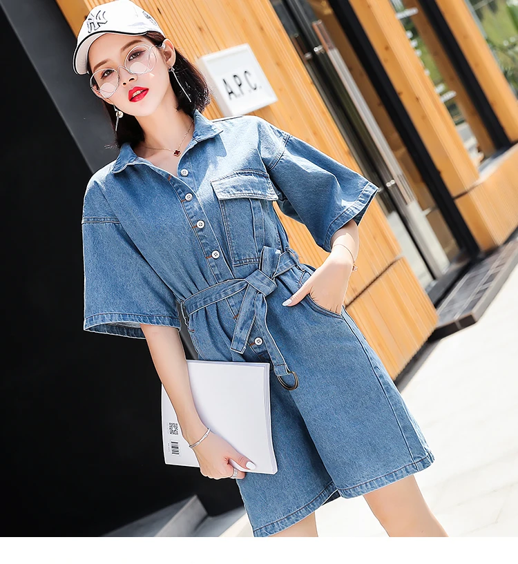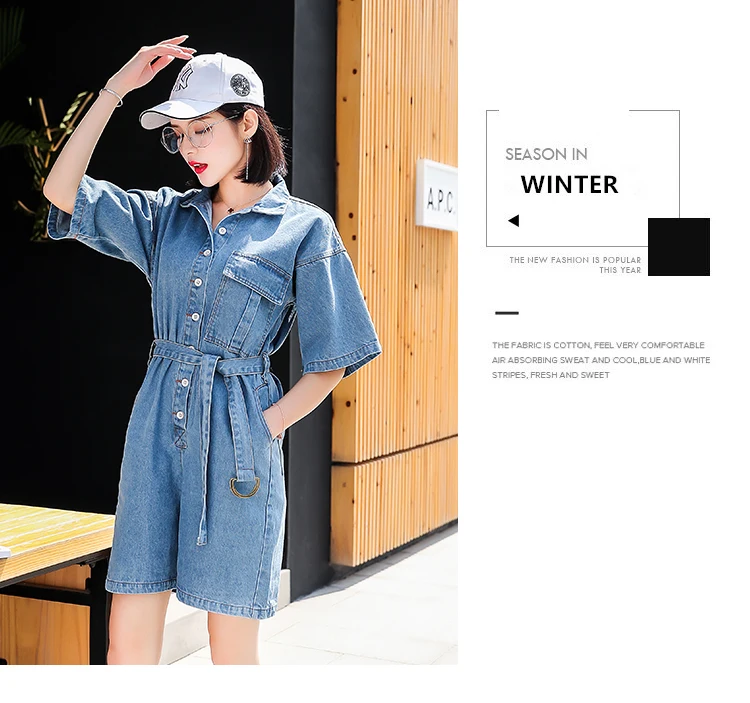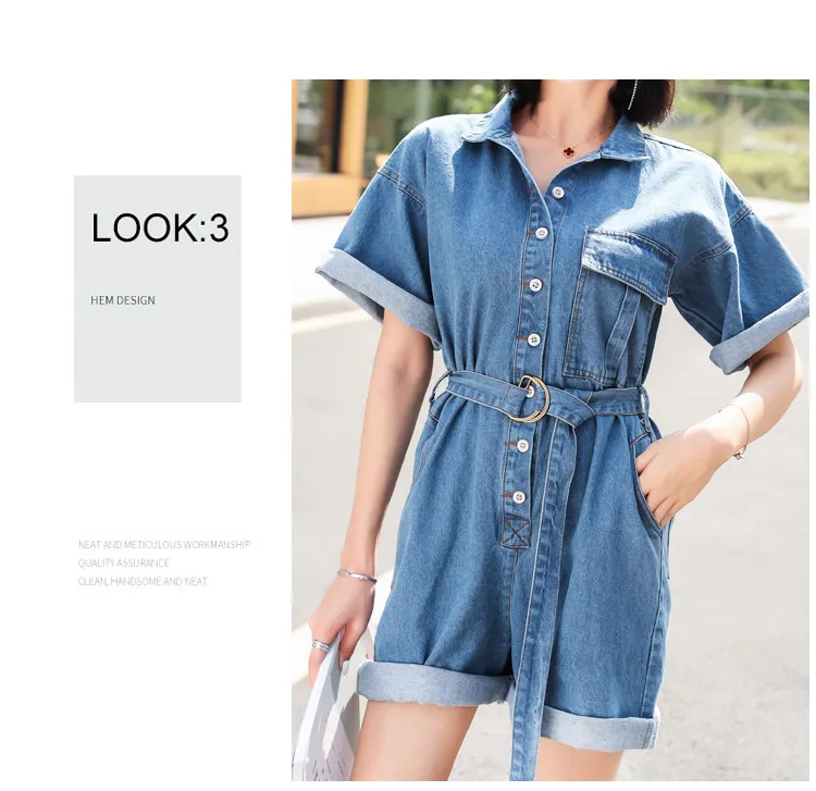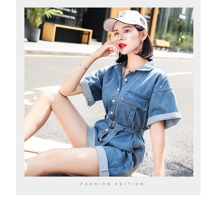Denim Jumpsuit Women Summer Overalls 2018 Europe America Style Short Sleeve Playsuits Rompers Womens Jumpsuit Shorts Combinaison
