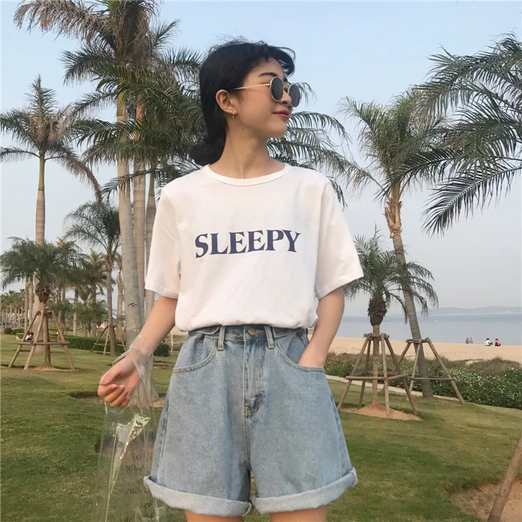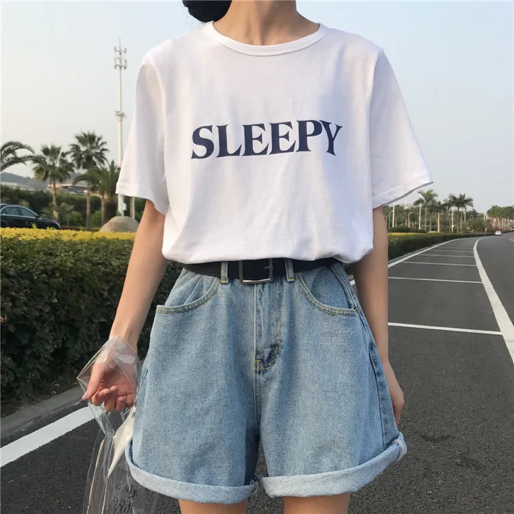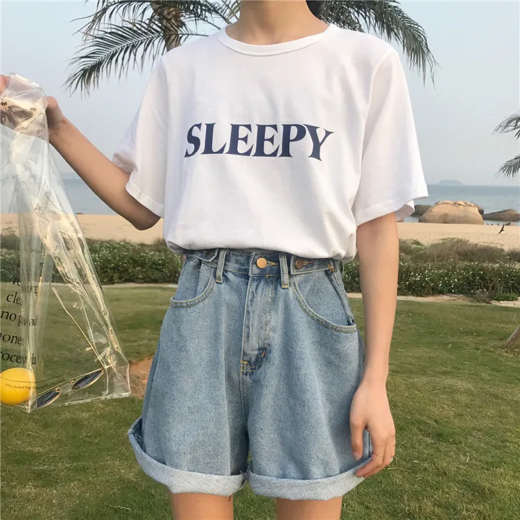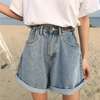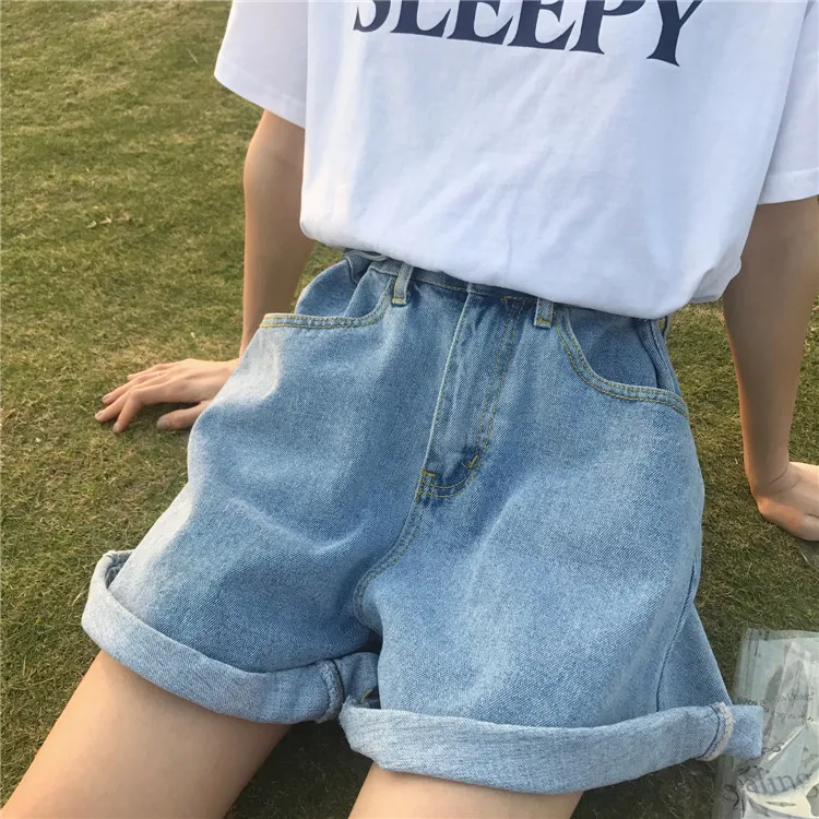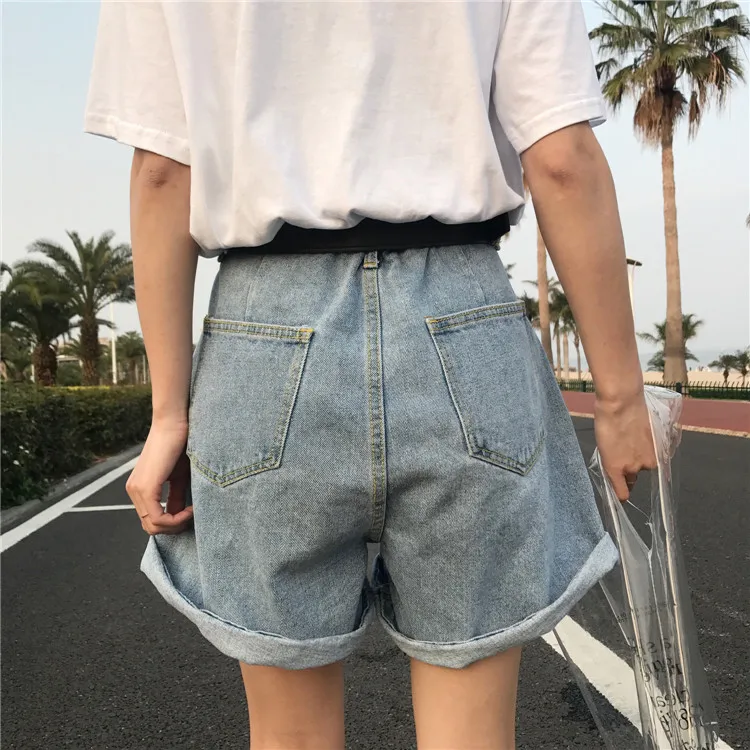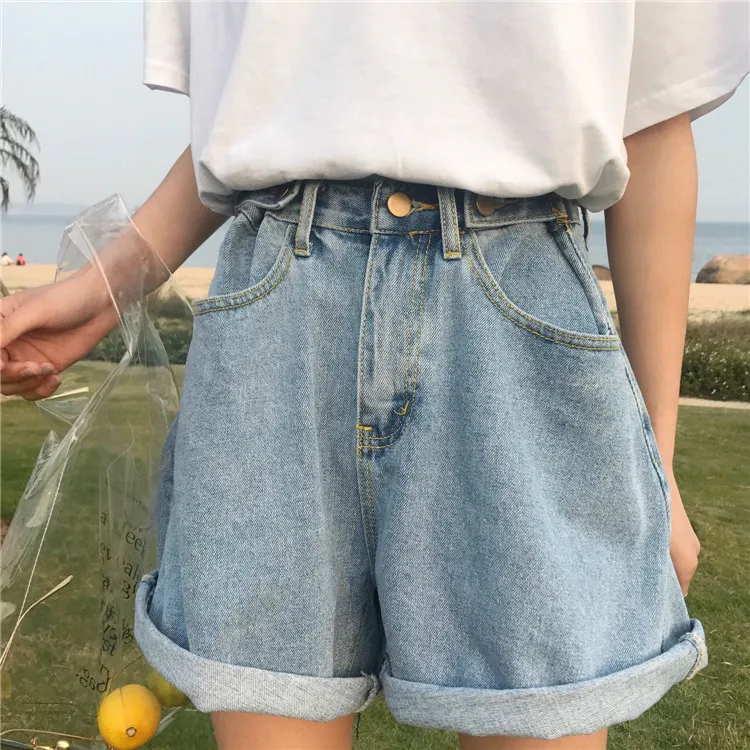 Denim Vintage Light Blue Solid Fashion High Waist Simple 2018 New Arrival Loose Casual Female Shorts