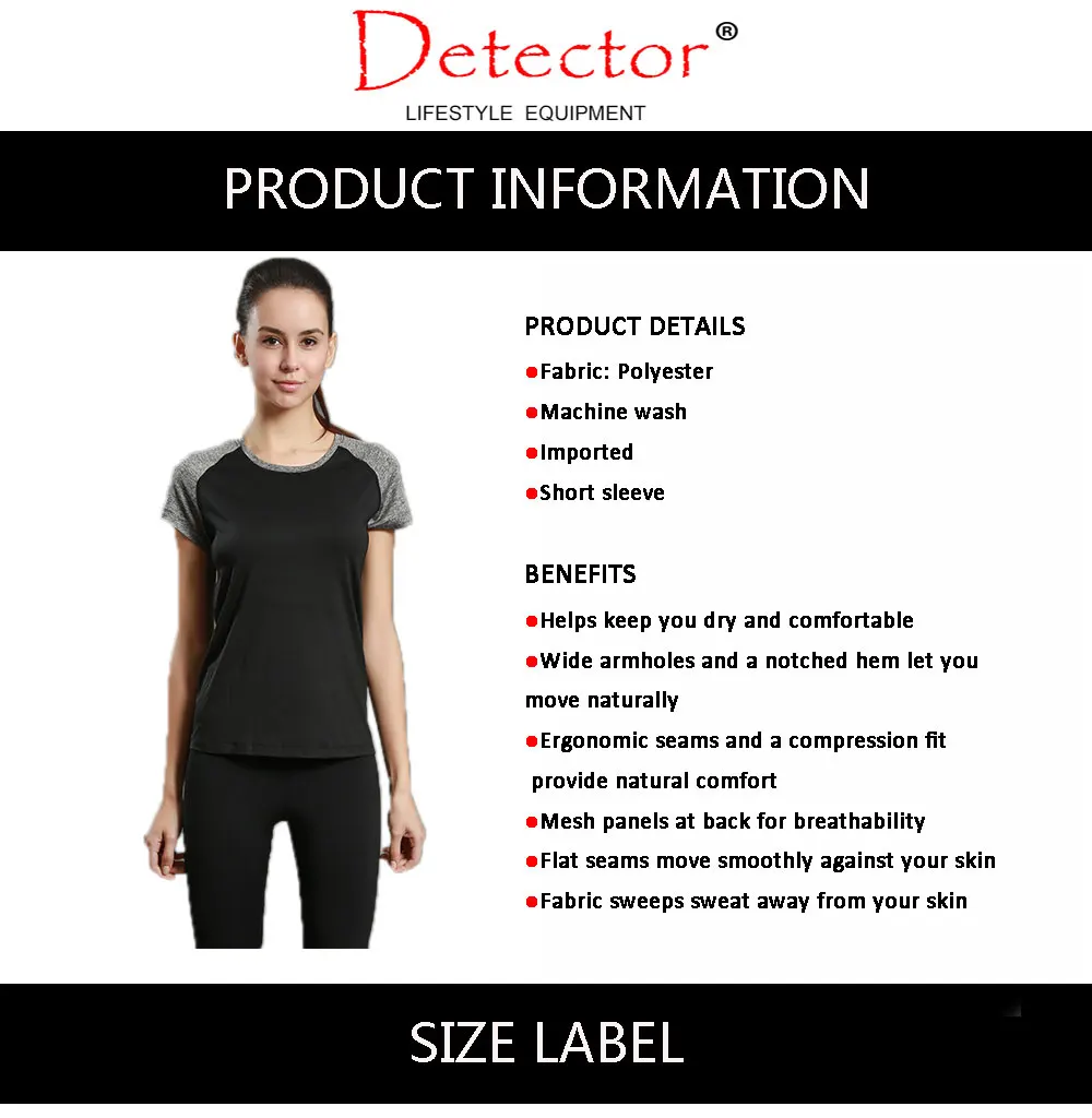 Detector Running Sports T shirt Dry Quick Yoga Gym Top Short-sleeved Fitness Tees Jogging Exercises Woman Tops