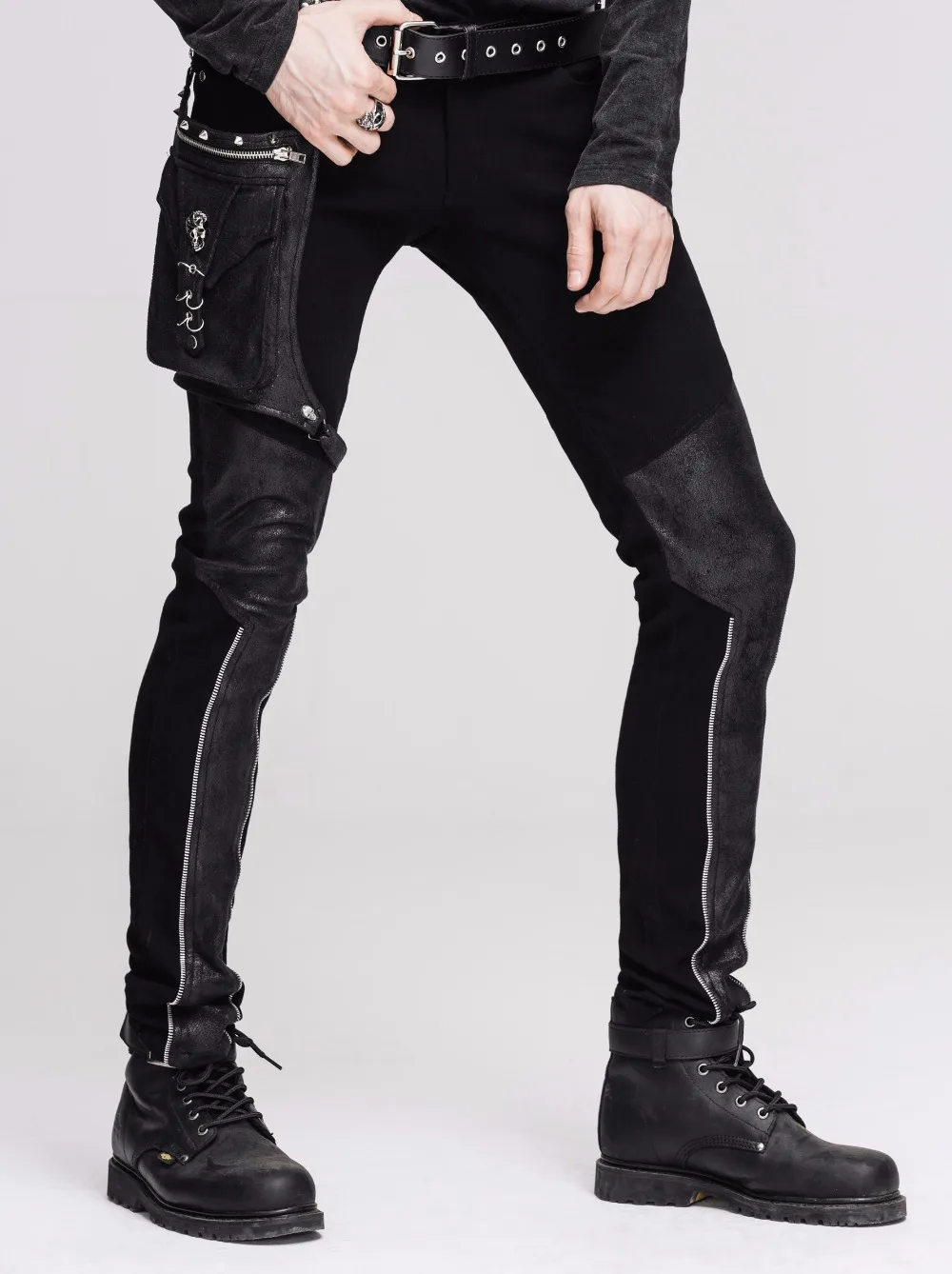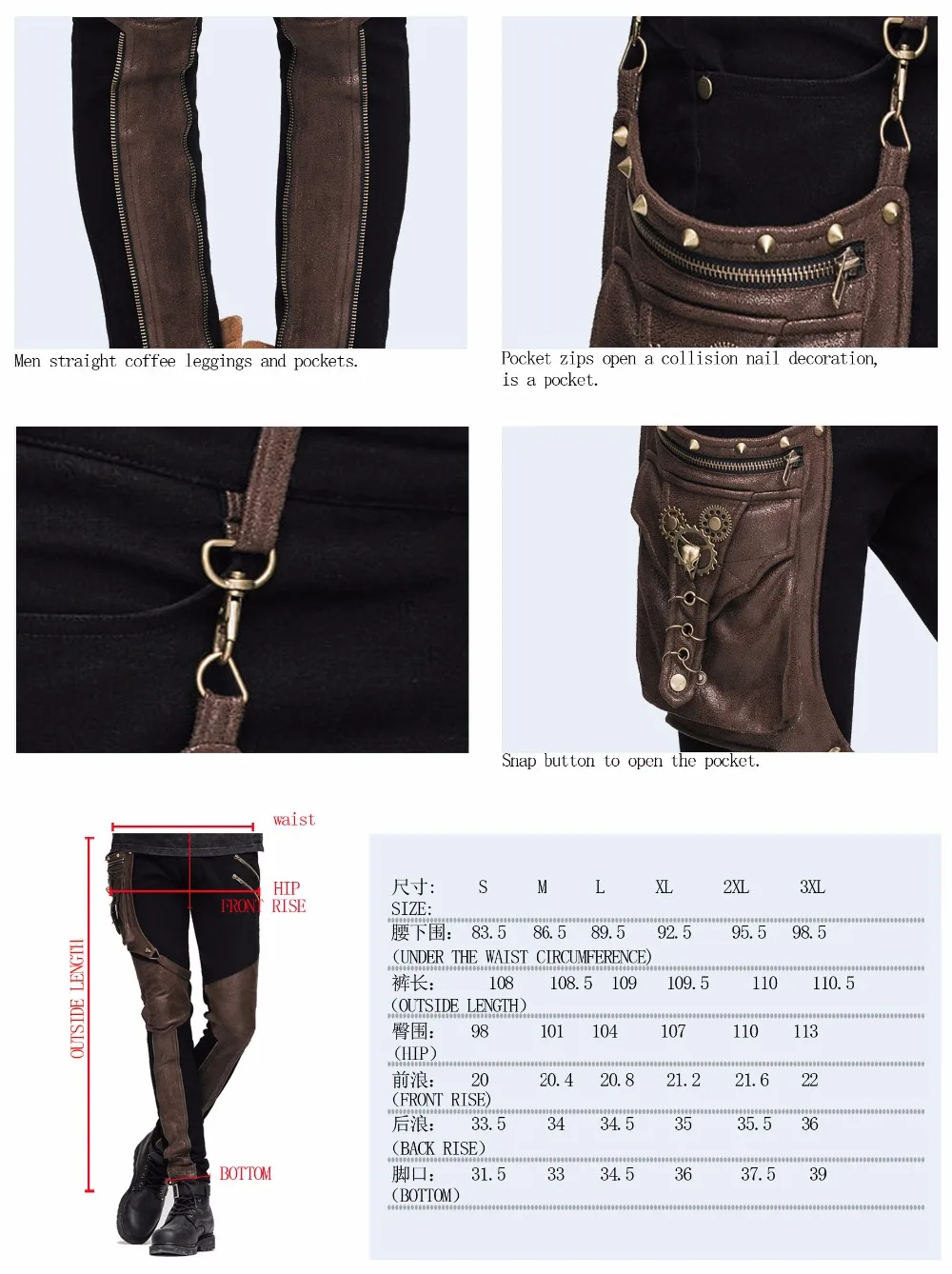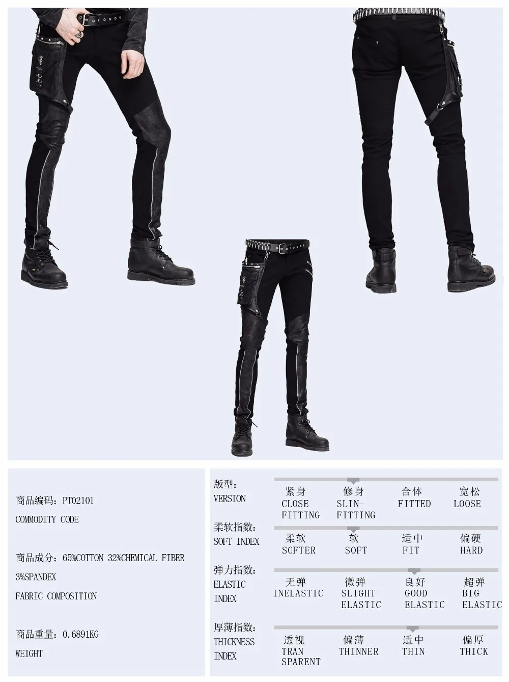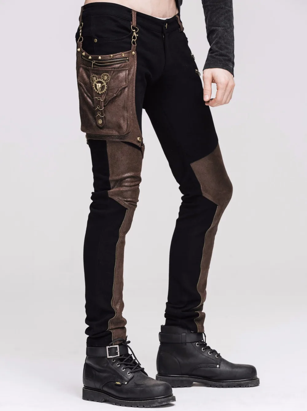 Devil Fashion Steampunk Men’s Straight Pants with Hip Holster Pocket Casual Spliced Pants Gothic Punk Trousers