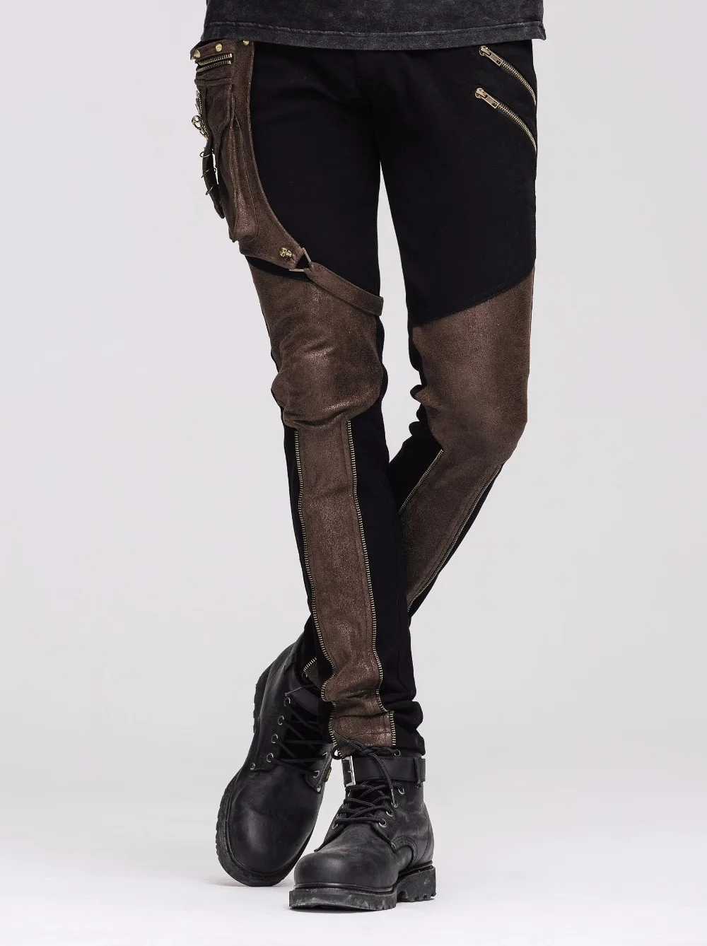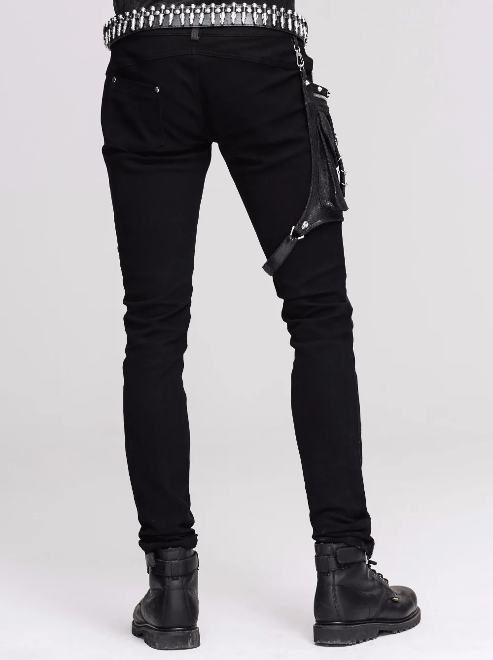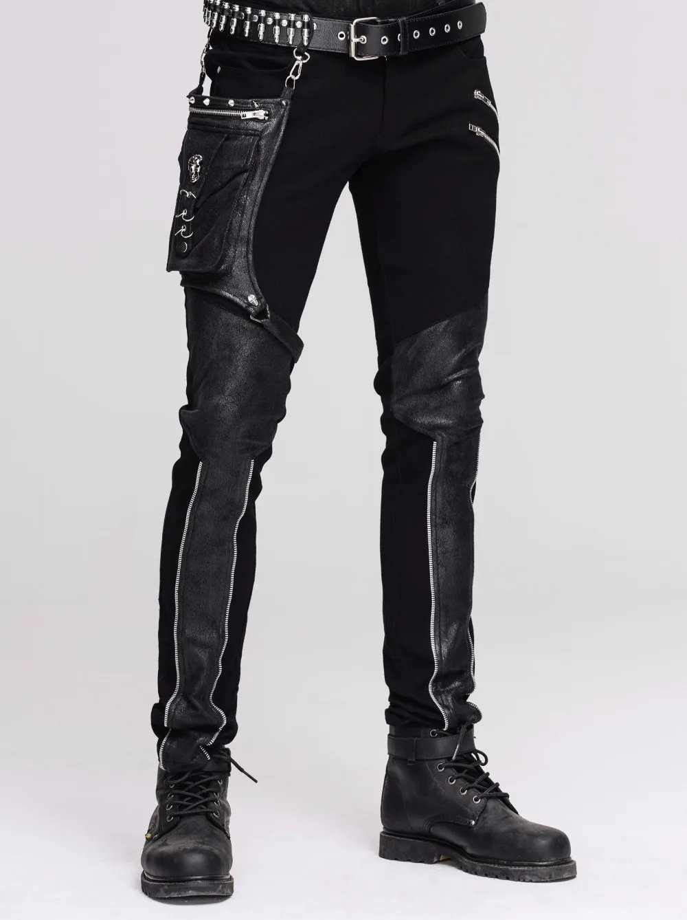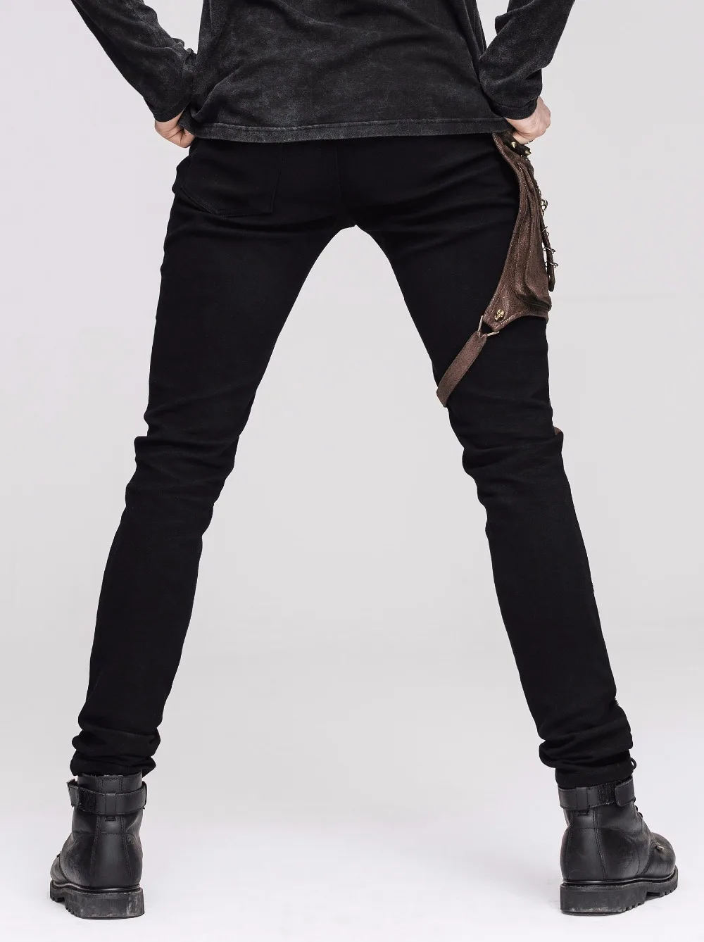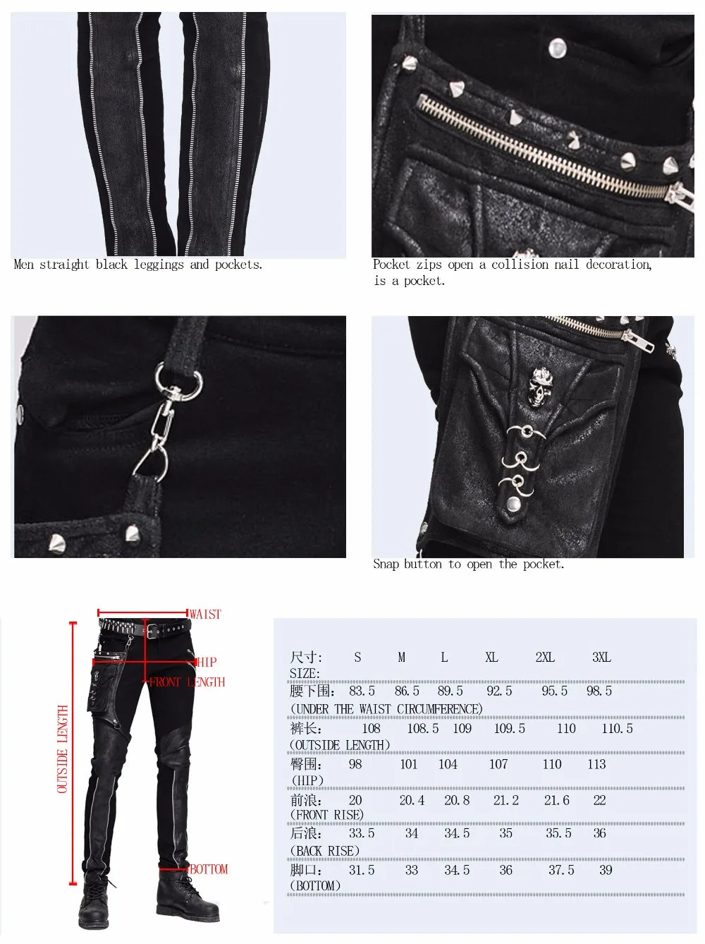 Devil Fashion Steampunk Men’s Straight Pants with Hip Holster Pocket Casual Spliced Pants Gothic Punk Trousers