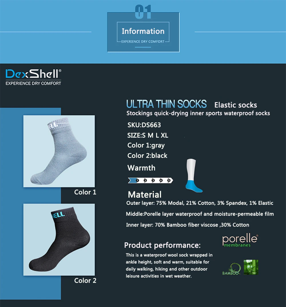 DexShell Awesome Waterproof Socks Running Bamboo Socks Men Women Coolmax Ultralite Outdoor Sports Cycling Hiking Camping skiing