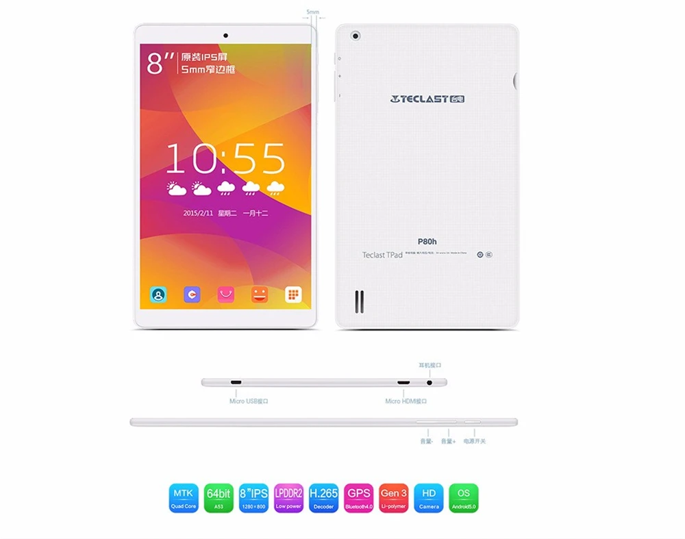 DHL Free Shipping Tablet PC teclast P80H 1280×800 IPS Android 5.1 ROM8GB WITH Quad Core WIFI2.4GHz/5.0GHz GPS/Bluetooth To Adult