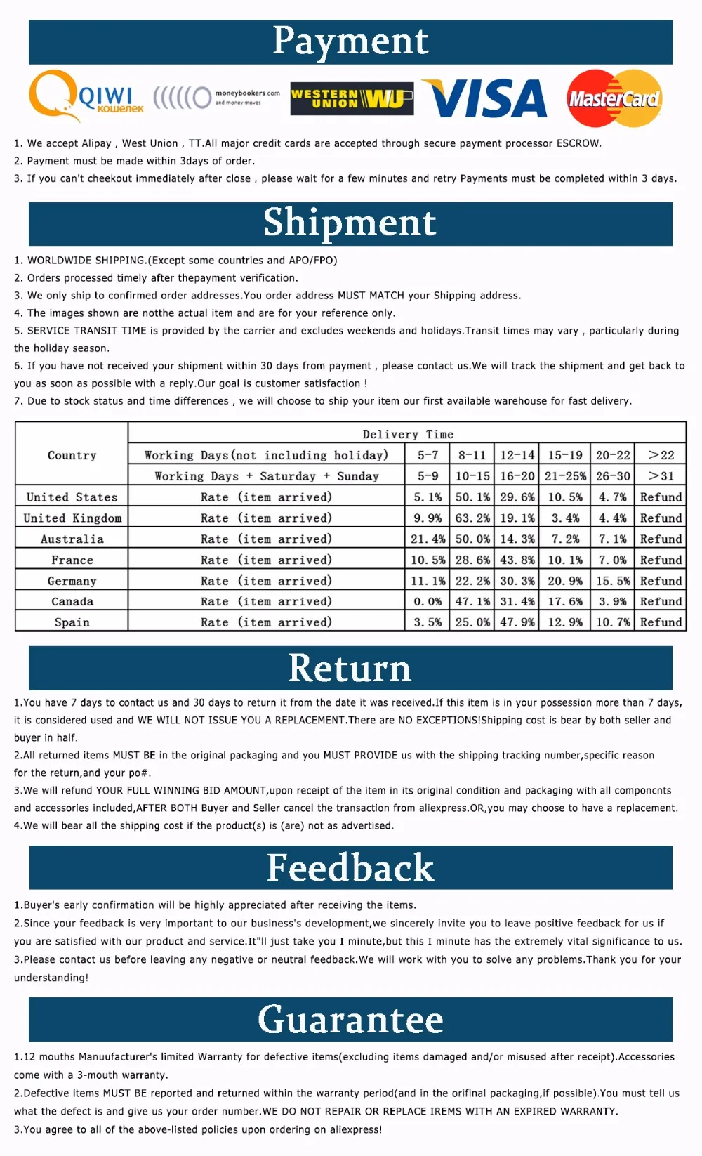 *You can submit refund requests within 15 days after the guaranteed period for delivery (45 days) has expired. You can do it by sending a message on Contact Us page