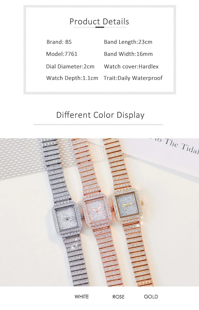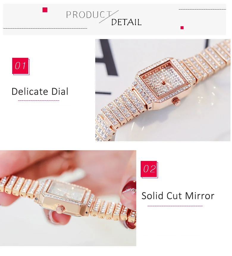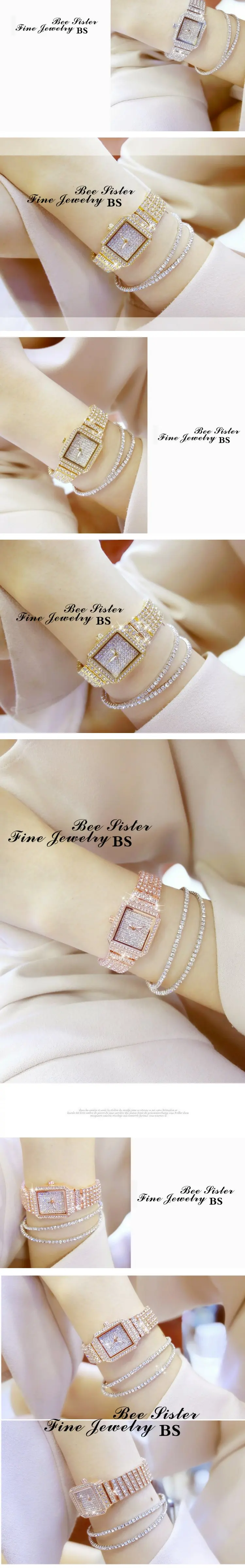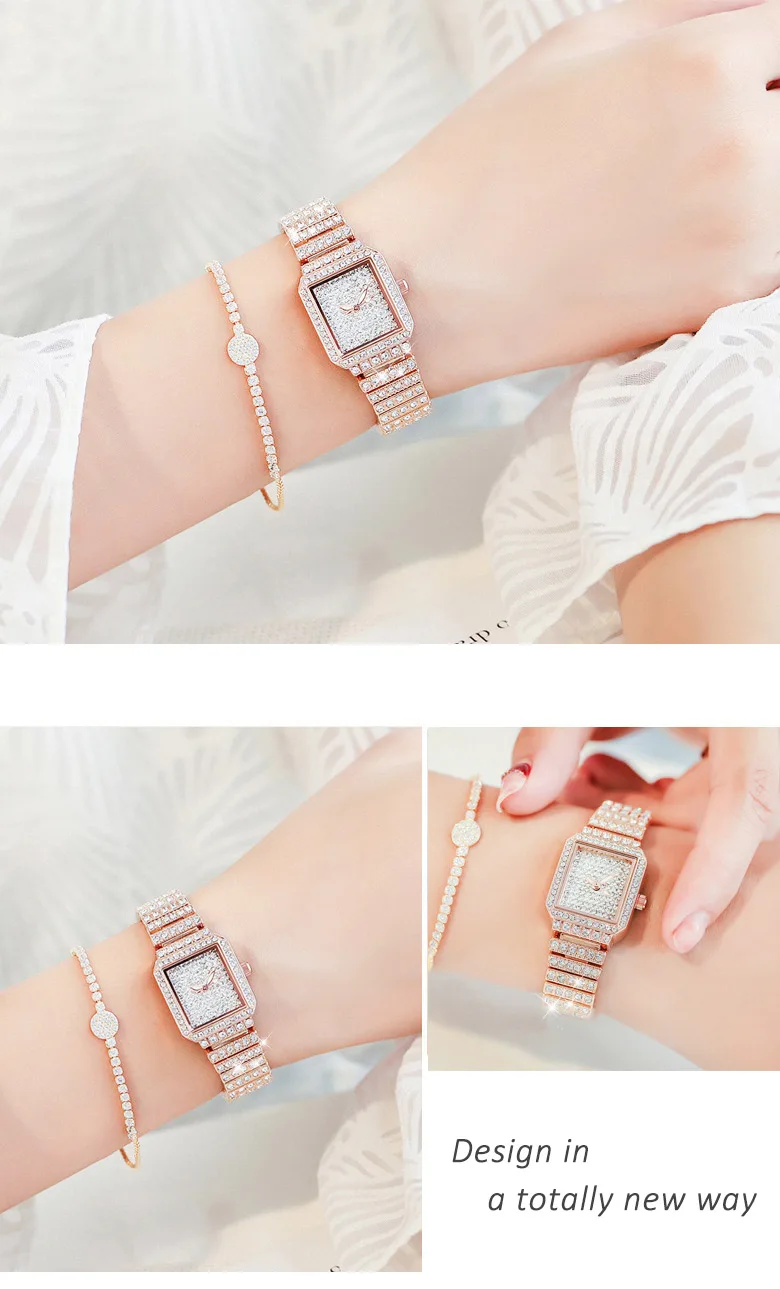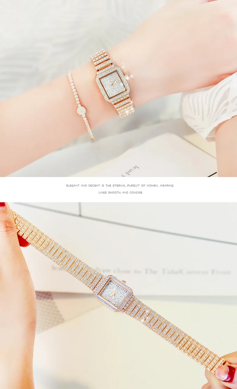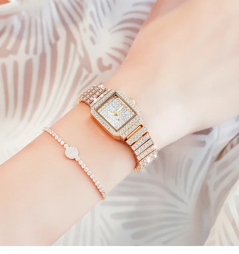Diamond Luxury Wristwatch Women Quartz Watch Rhinestone Square Stainless Steel Ladies Dress Bracelet Watch With Gift Box