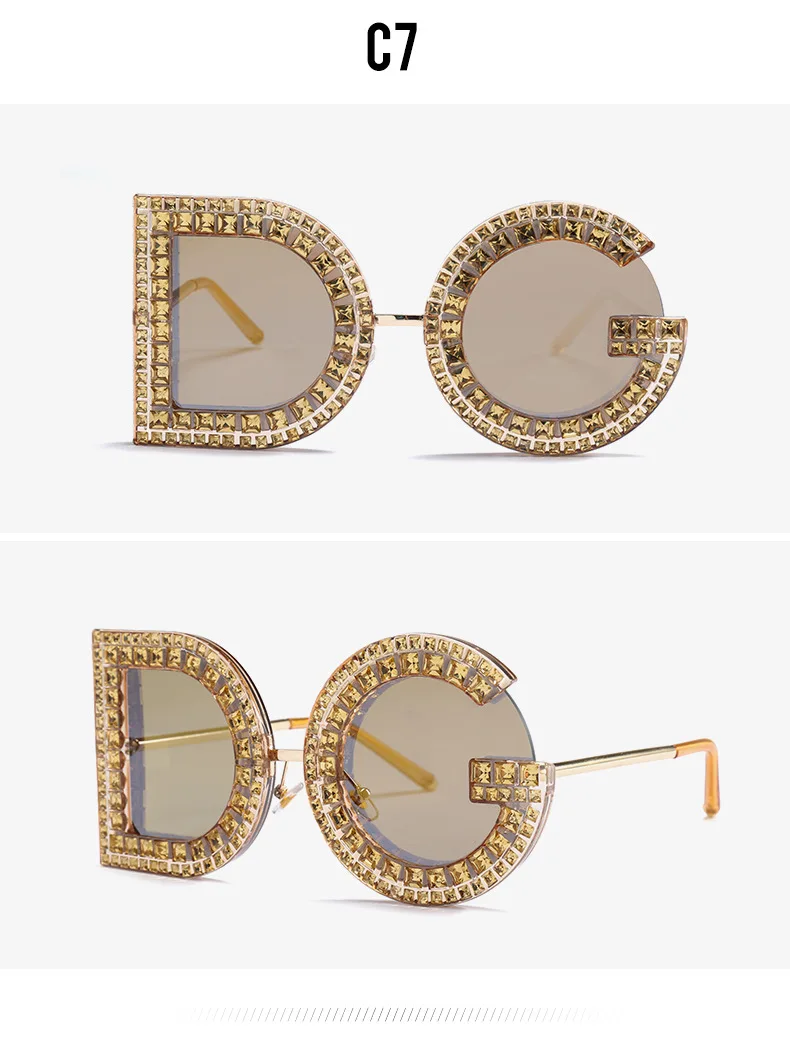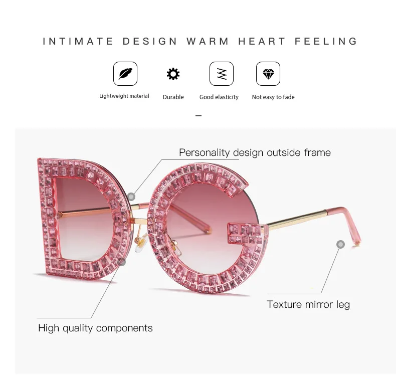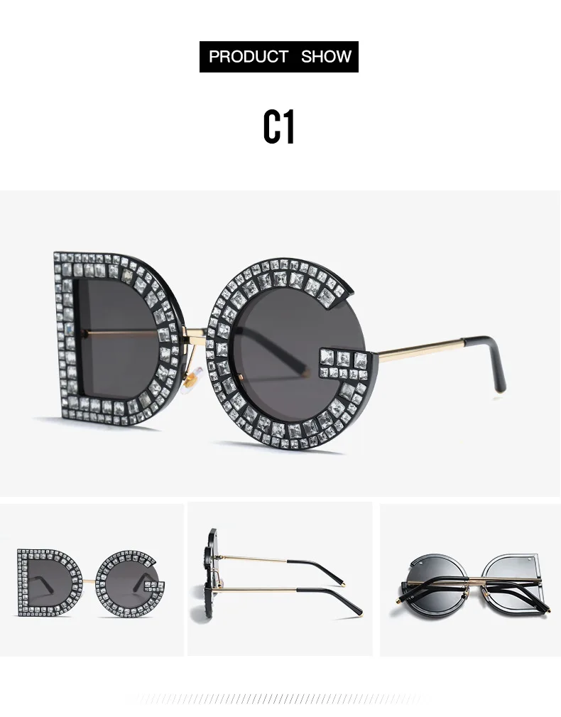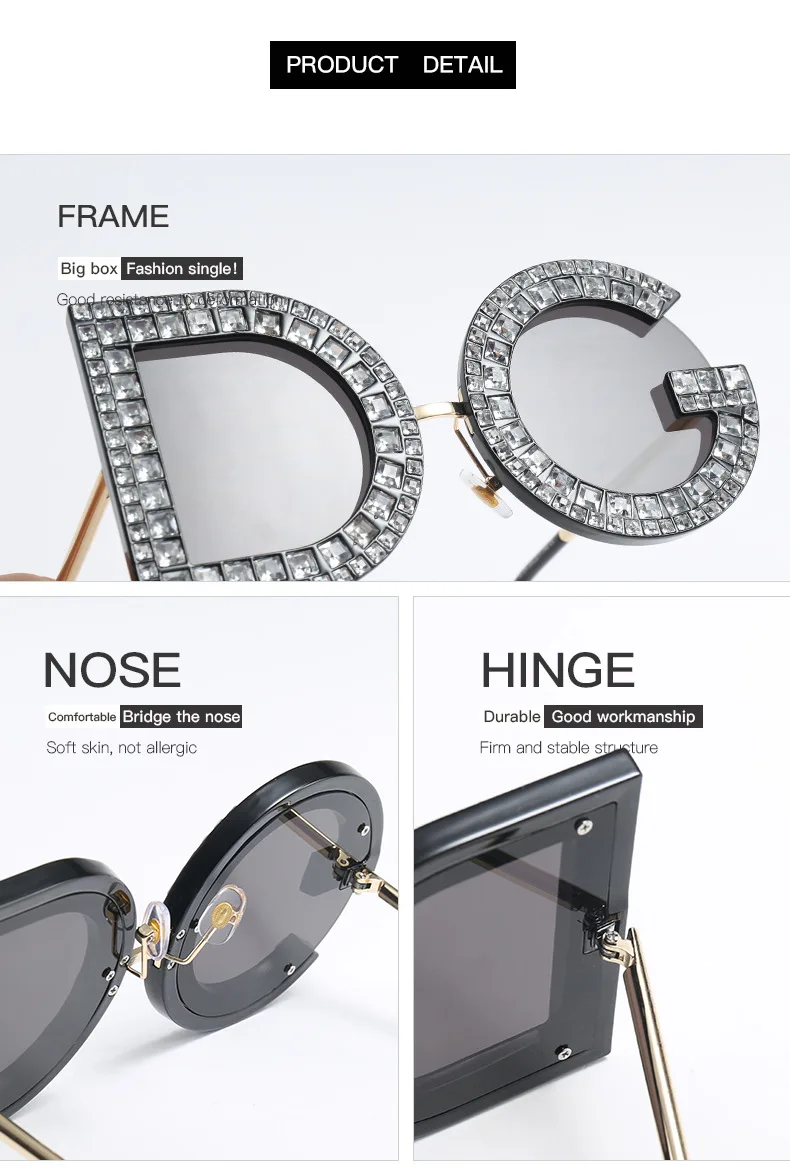 Diamond Round Sunglasses Women 2019 Luxury Brand Crystal Sunglasses Female Alloy Clear Pink Eyewear Gemstone gunes gozlugu