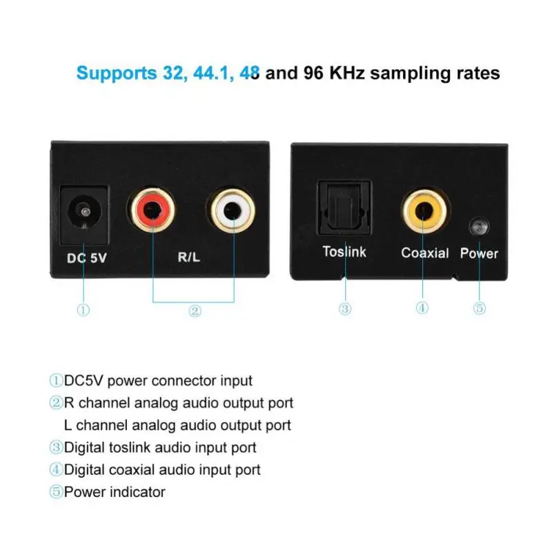 1. Convenient converter, convert a coaxial cable or Toslink digital audio signal into analog L/R audio.
