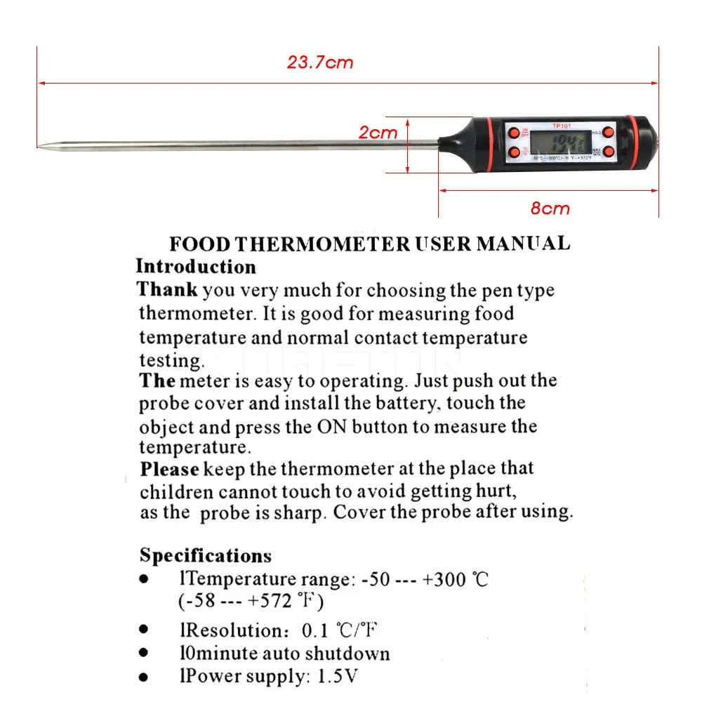 Pen-type structure, stainless steel probe, straight measurement, easy to carry. Wide measuring range. Suitable for refrigeration, heating, food processing, rubber processing and other fields.