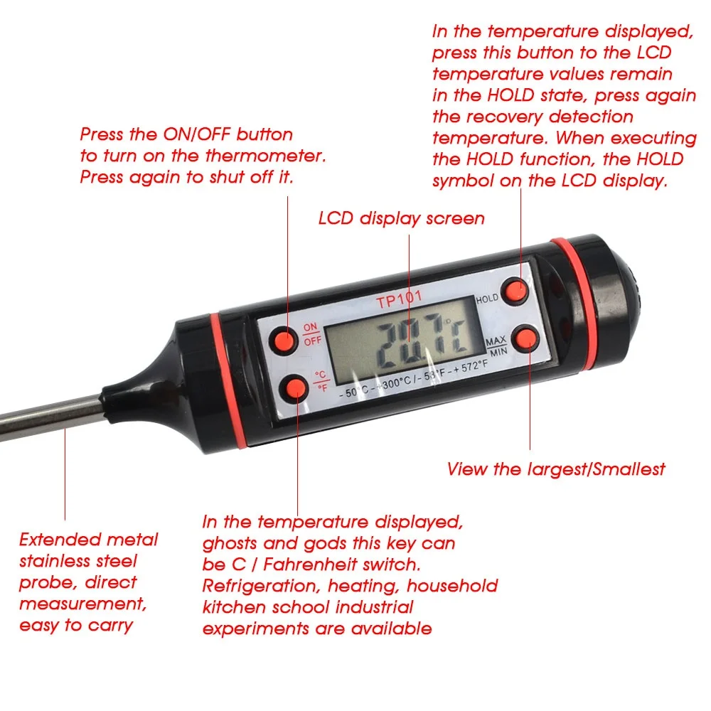 Digital Probe Meat Thermometer Kitchen Cooking BBQ Food Baby Drinking Coffee Thermometer Cooking Stainless Steel Foldable Probe