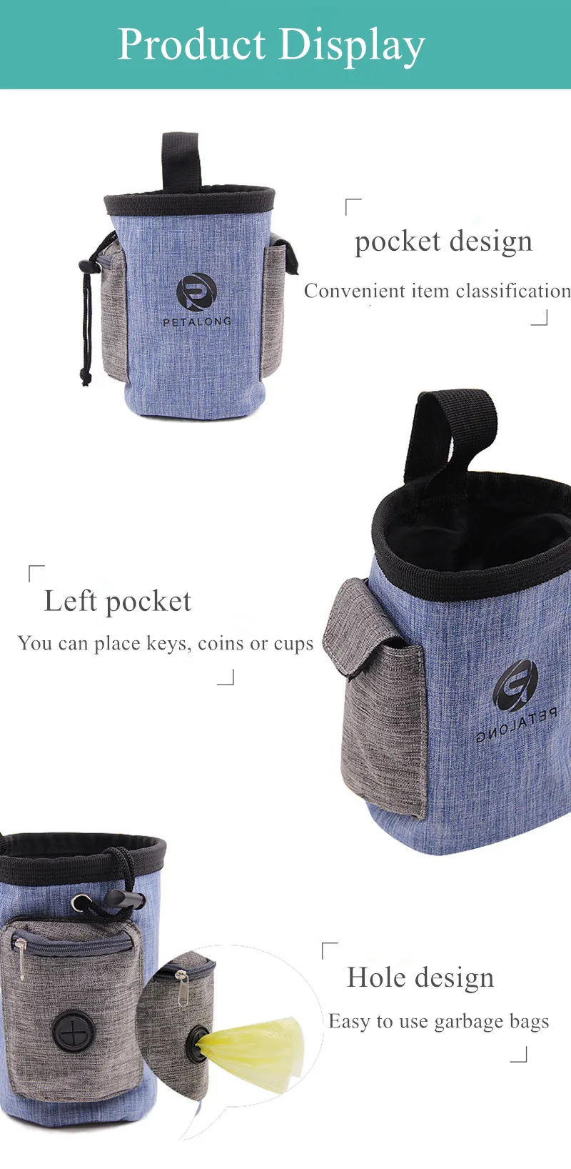 2.TWO IN ONE POCKET DESIGN: With pockets on each side, one is perfect to hold your smartphone, small changes, key or ID card, while a built-in trash bag dispenser is on the other size, so your doggy poop bags are ready right when you need them. D-ring design for attaching clickers, whistles, keys, etc.