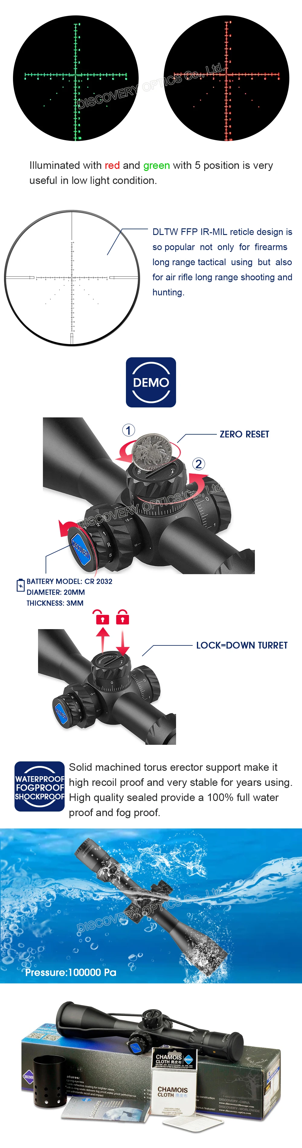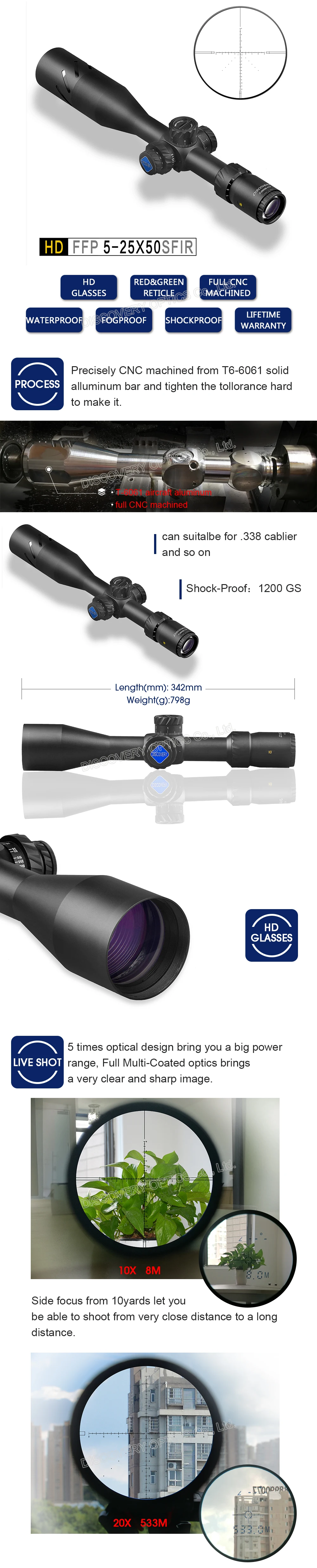 Discovery HD 5-25X50 SFIR DLTW FFP IR-MIL Tactical Optics Riflescope Shooting and Hunting rifle scope With Illumination