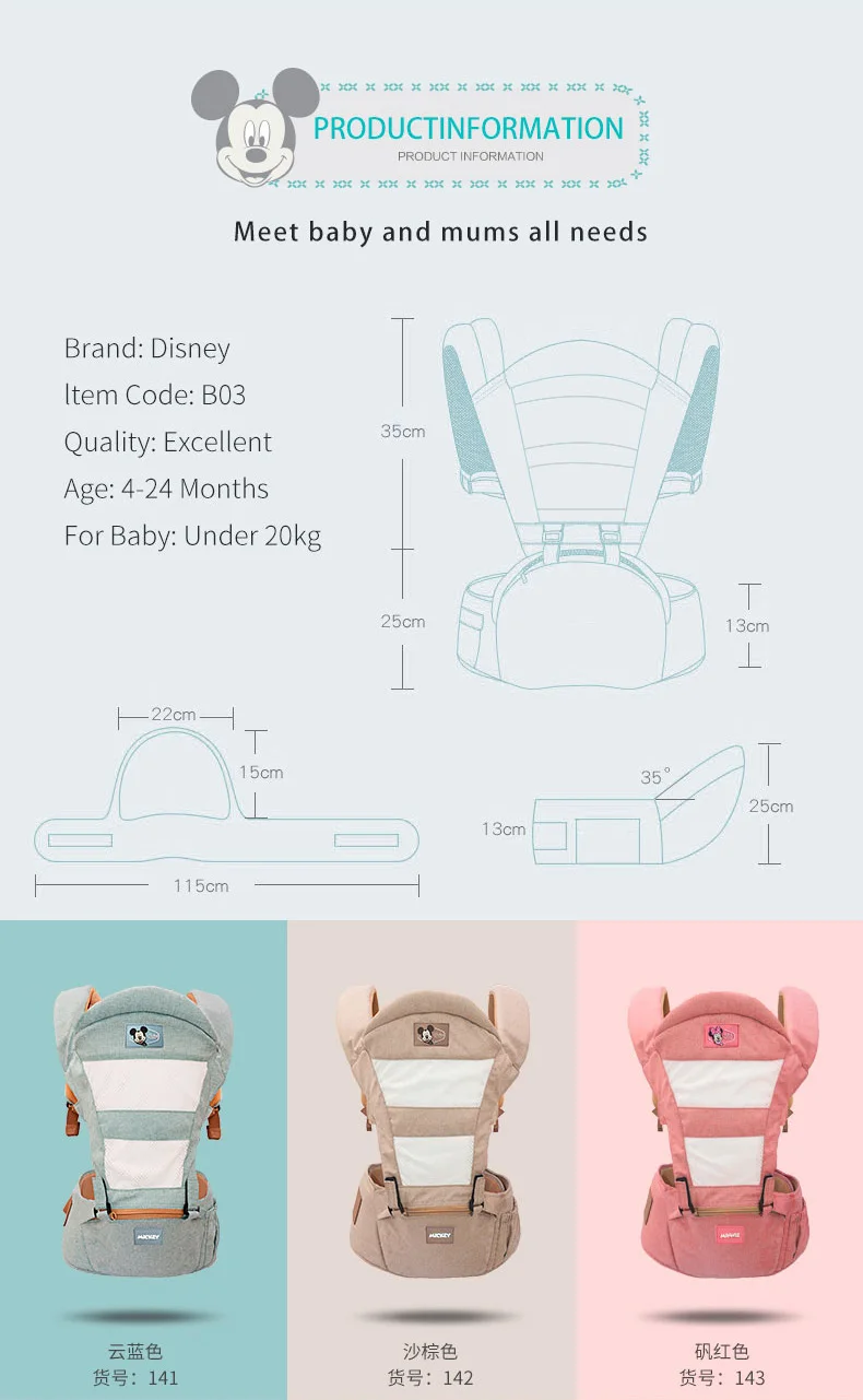 Disney Breathable Multifunctional Front Facing Baby Carrier Infant Baby Sling Backpack Pouch Wrap Disney Accessories