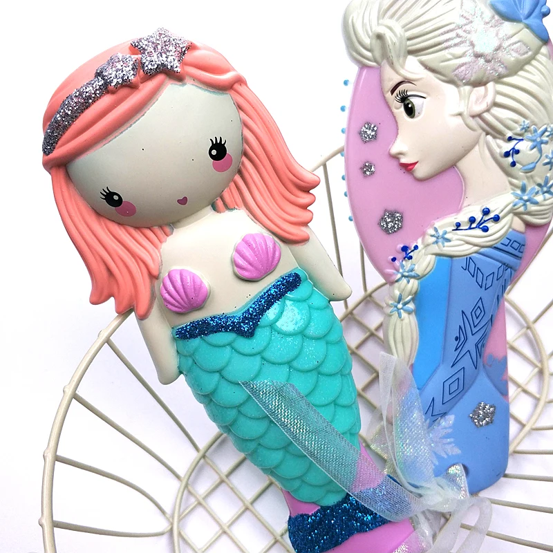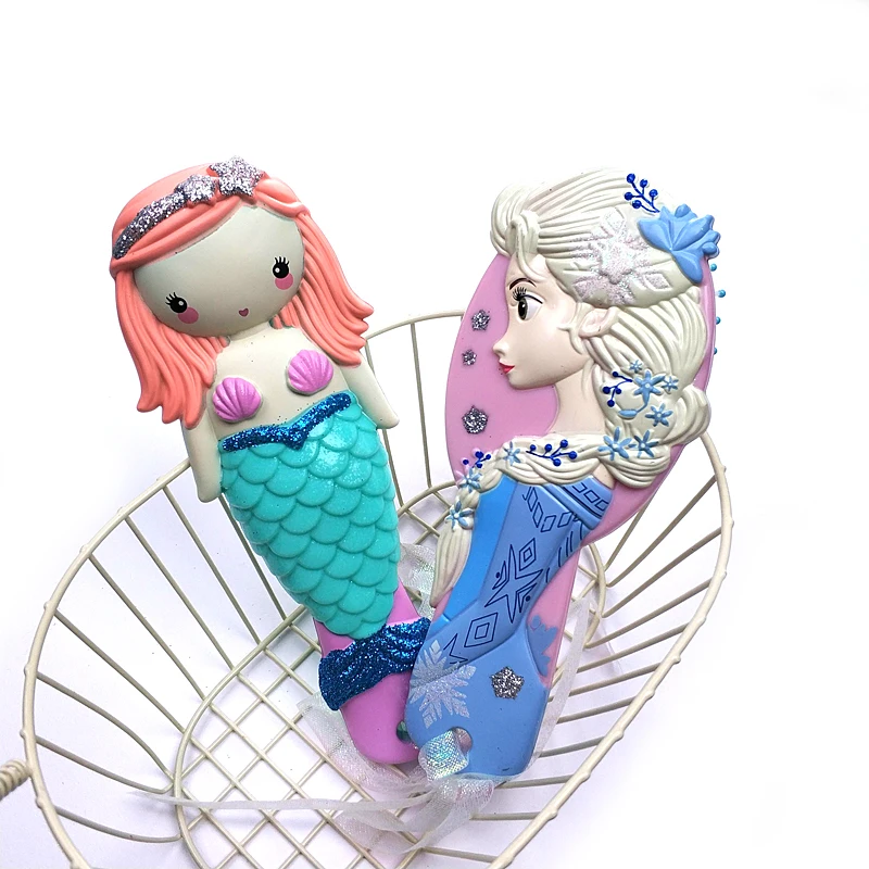 Disney princess frozen Hair Brush brosse cheveux Kids Gentle Anti-static Brush Curly Tangle Mermaid Bristles Handle Tangle Comb