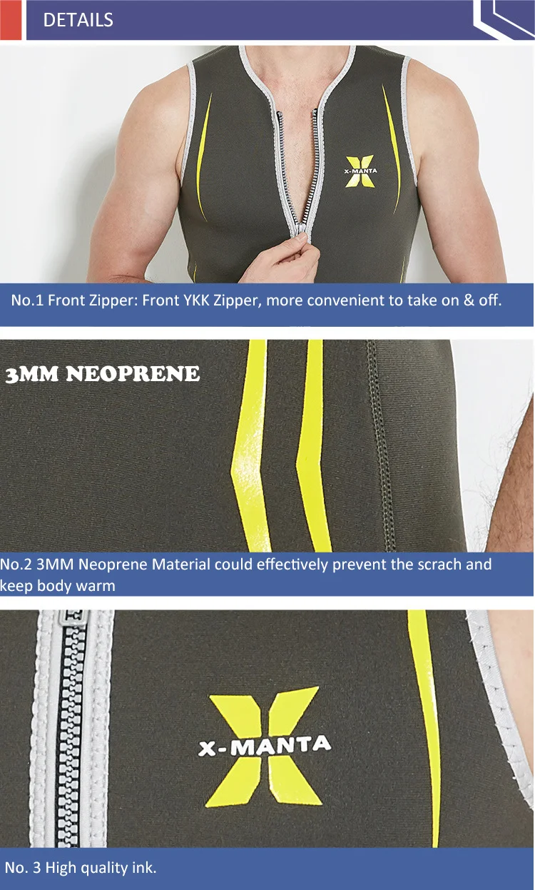 Dive&sail 3mm wetsuit vest sleeveless Neoprene Wetsuits Top SCUBA Surf Snorkeling front Zipper