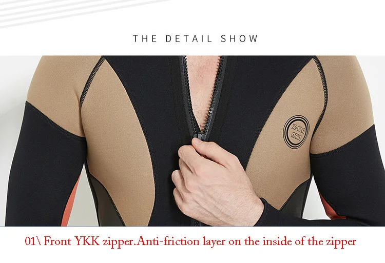 Dive&sail Men’s wetsuit jacket 3mm neoprene Long Sleeved Jumpsuit Scuba Dive Jacket Wet Suit Top Winter Swim Warm Surf Upstream