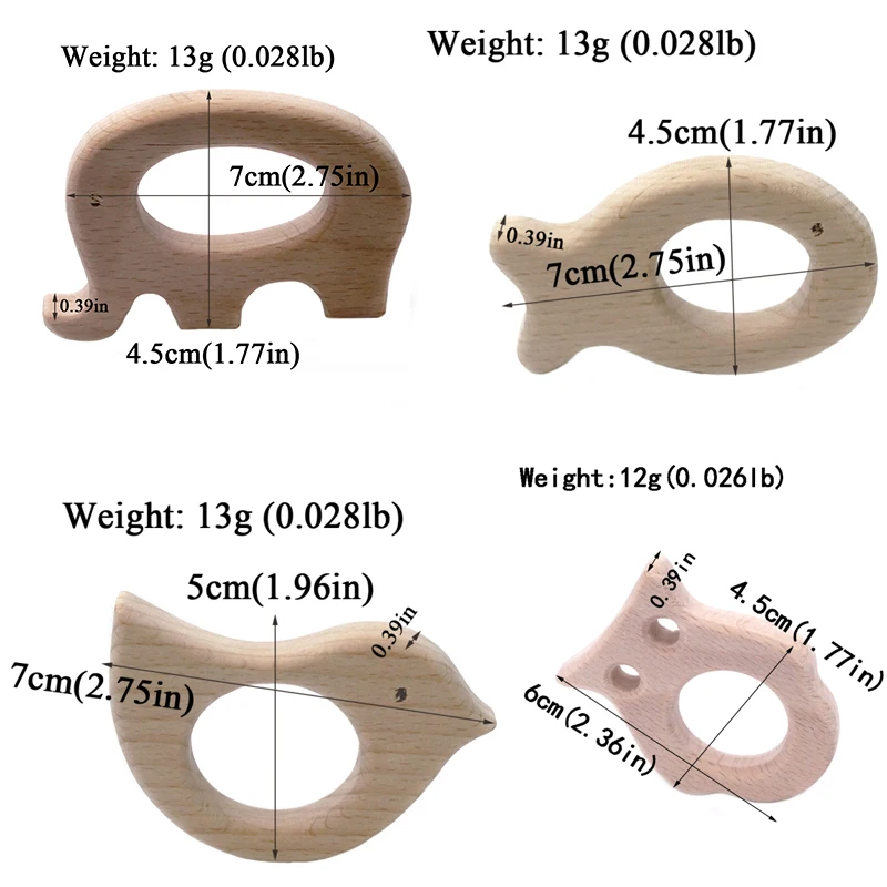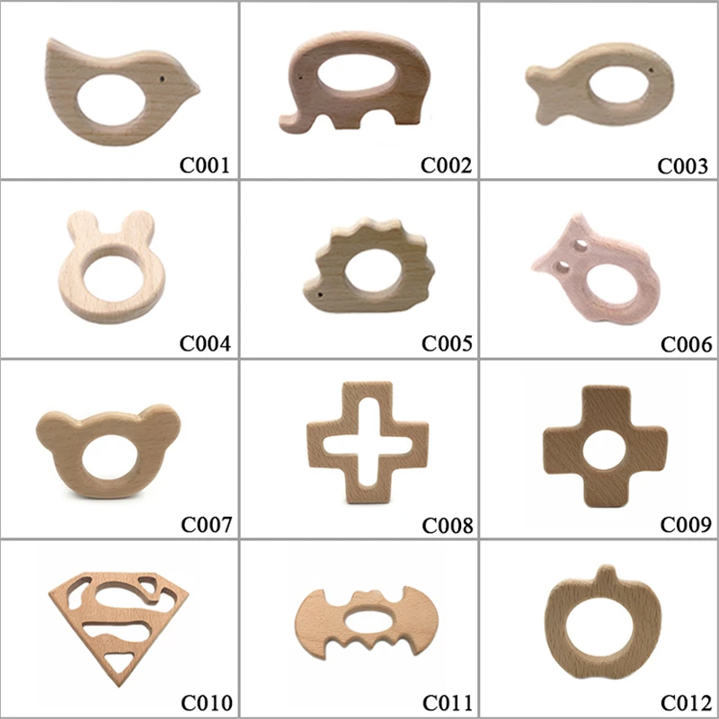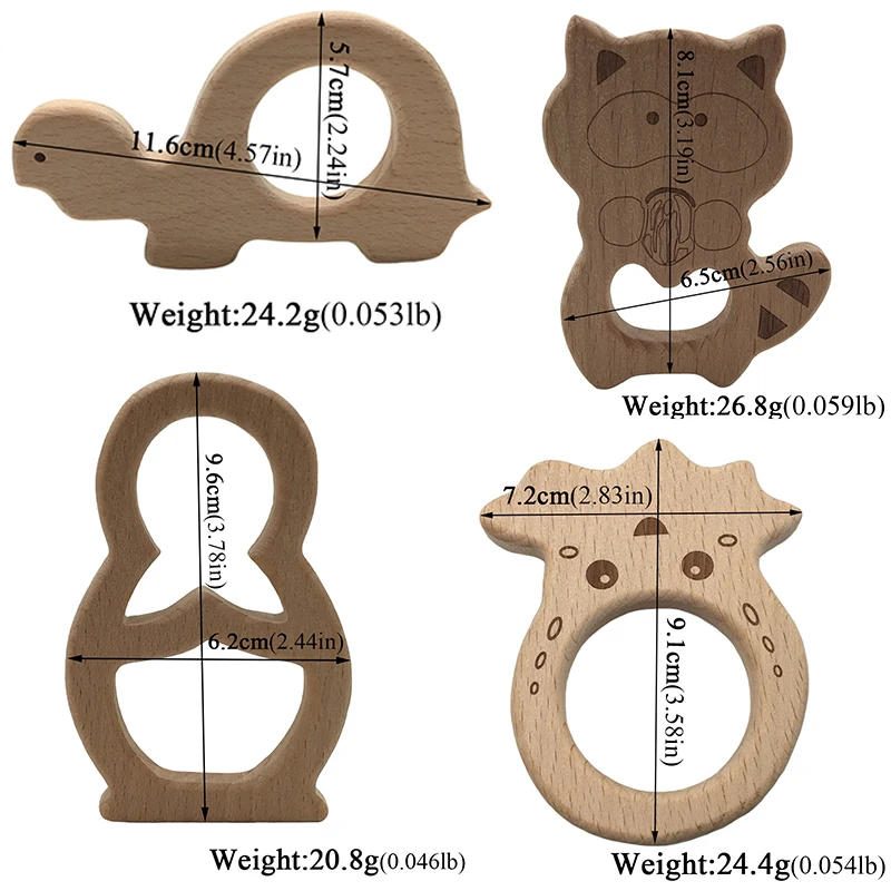 DIY Baby Gym Toys Wood Necklace Pendant Food Grade Wooden Teether Toys Tortoise Koala Whale Turtle Wooden Teething Toys